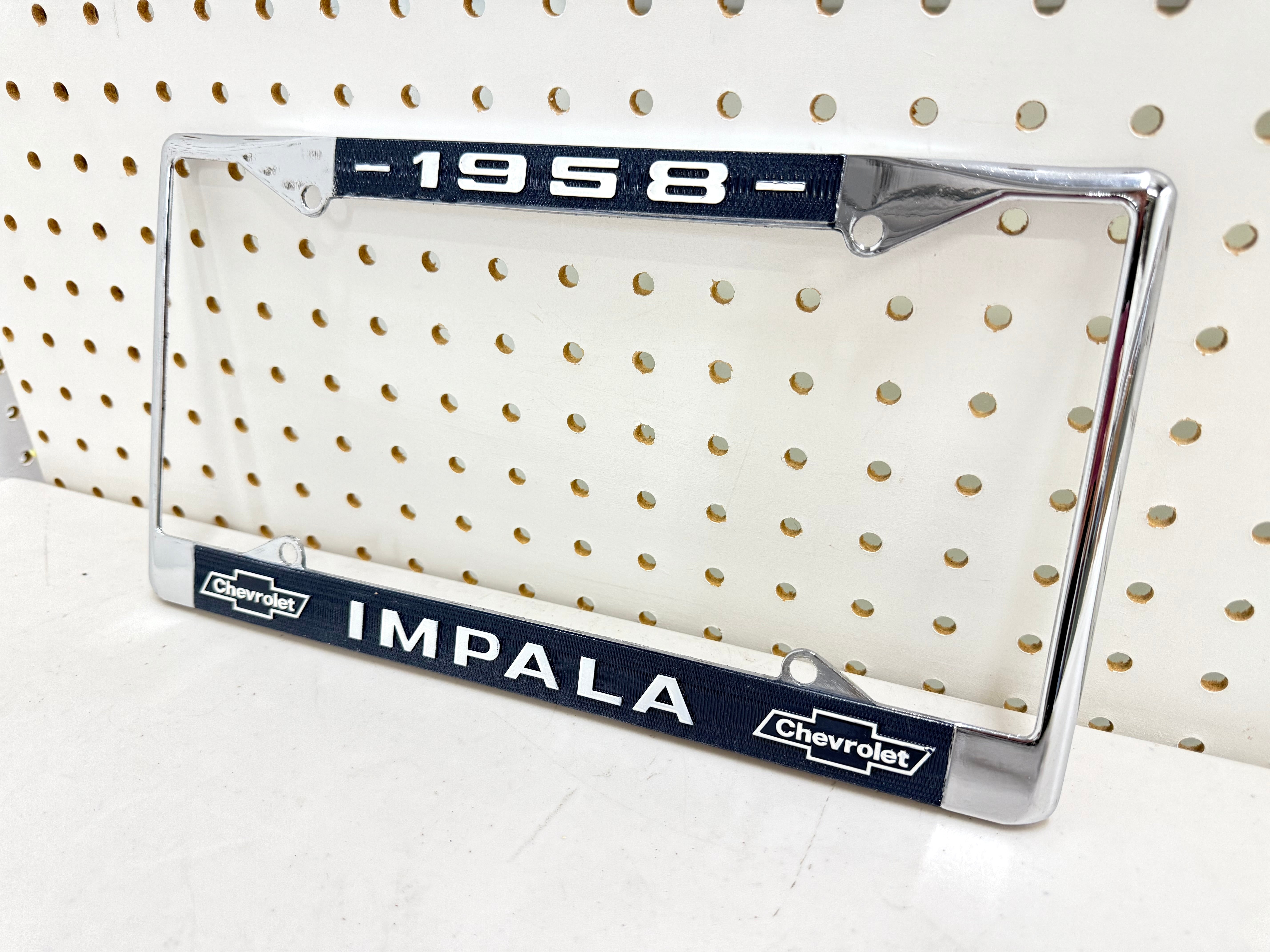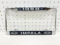 1958 Chevrolet Impala GM licensed vintage front or rear license plate frame with Dual Bowtie Logos