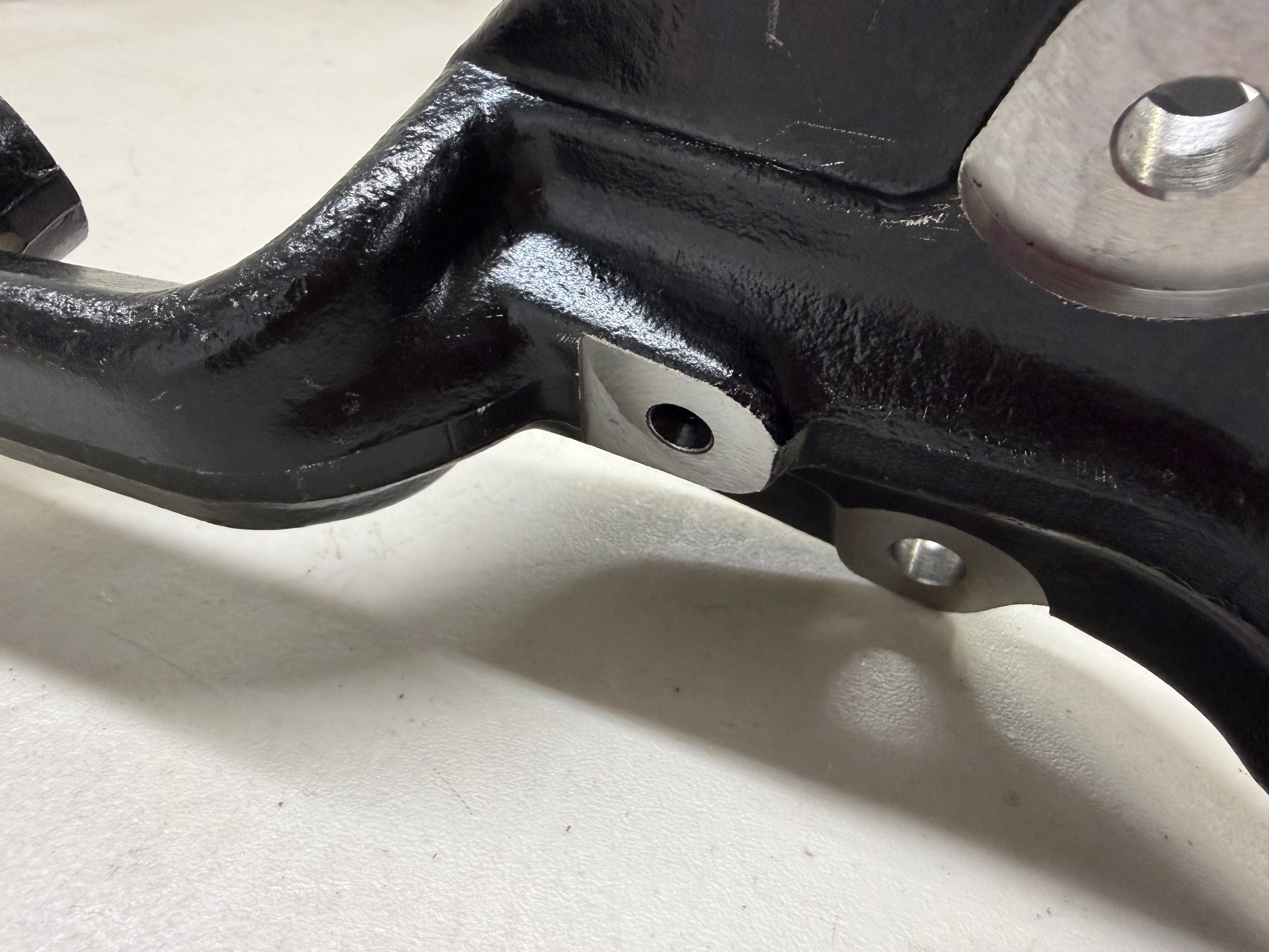 - Spindle pin is .25" longer than original for ease of disc brake installation