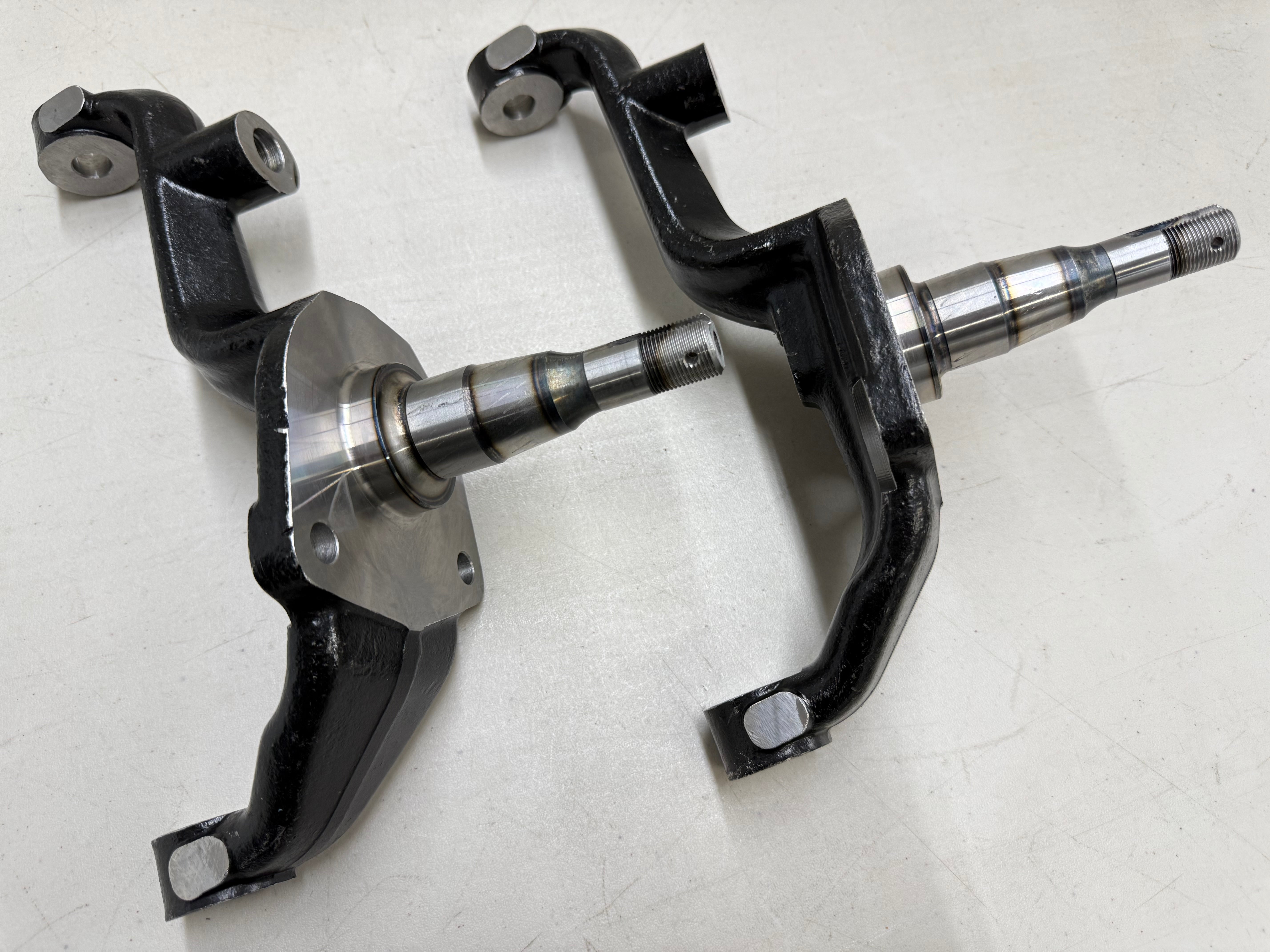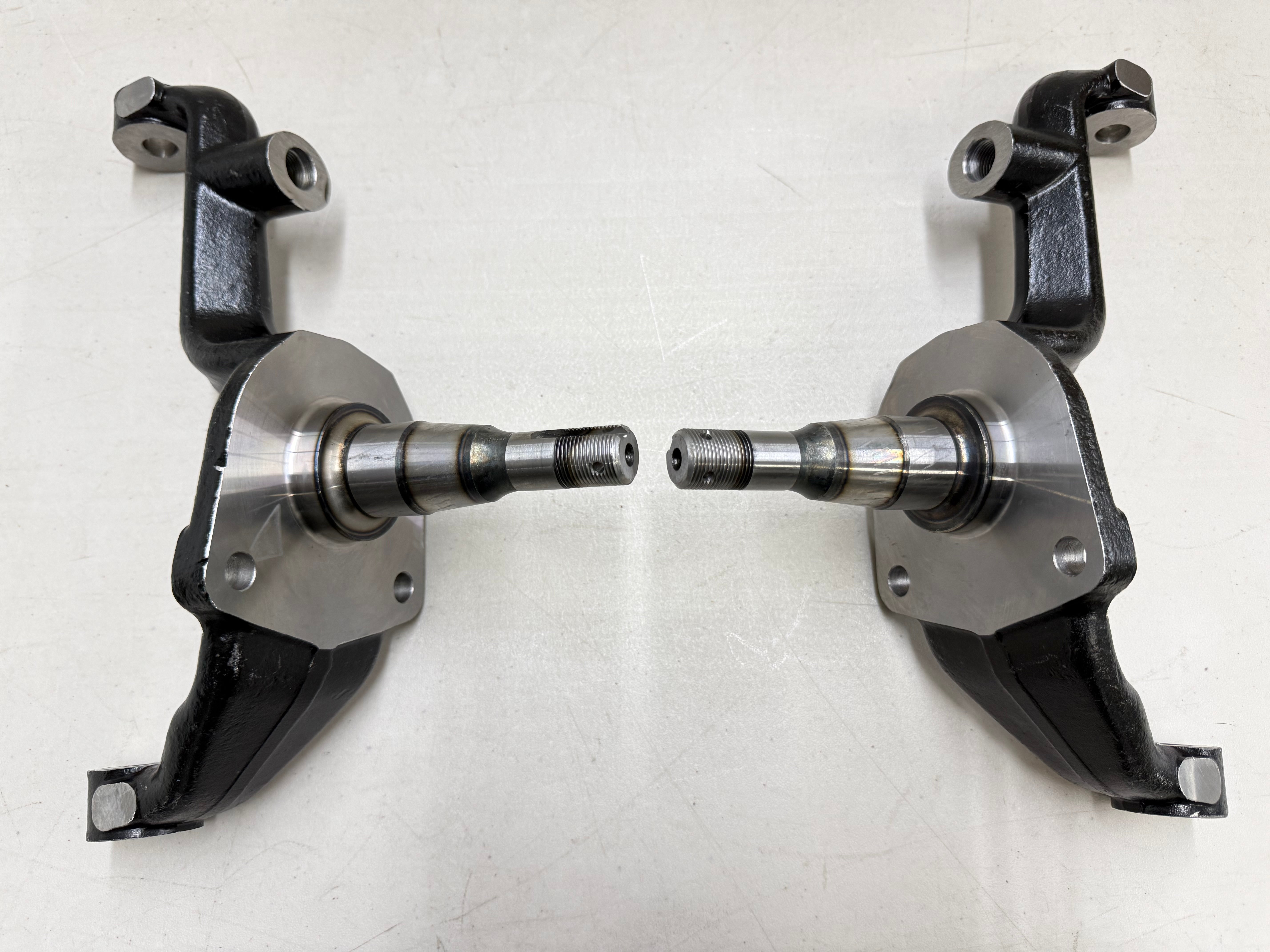 These Front Spindles are a reproduction of used on 1959-1964 Chevy Full Size cars, and will look, fit, and perform just like original. If you are doing a restoration of a 1959-1964 Chevy, or just want the correct parts to finish that hotrod , lowrider or vintage classic car project, these are the perfect parts! These spindles work with a host of disc brake kits and the quality is second to none!