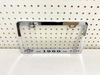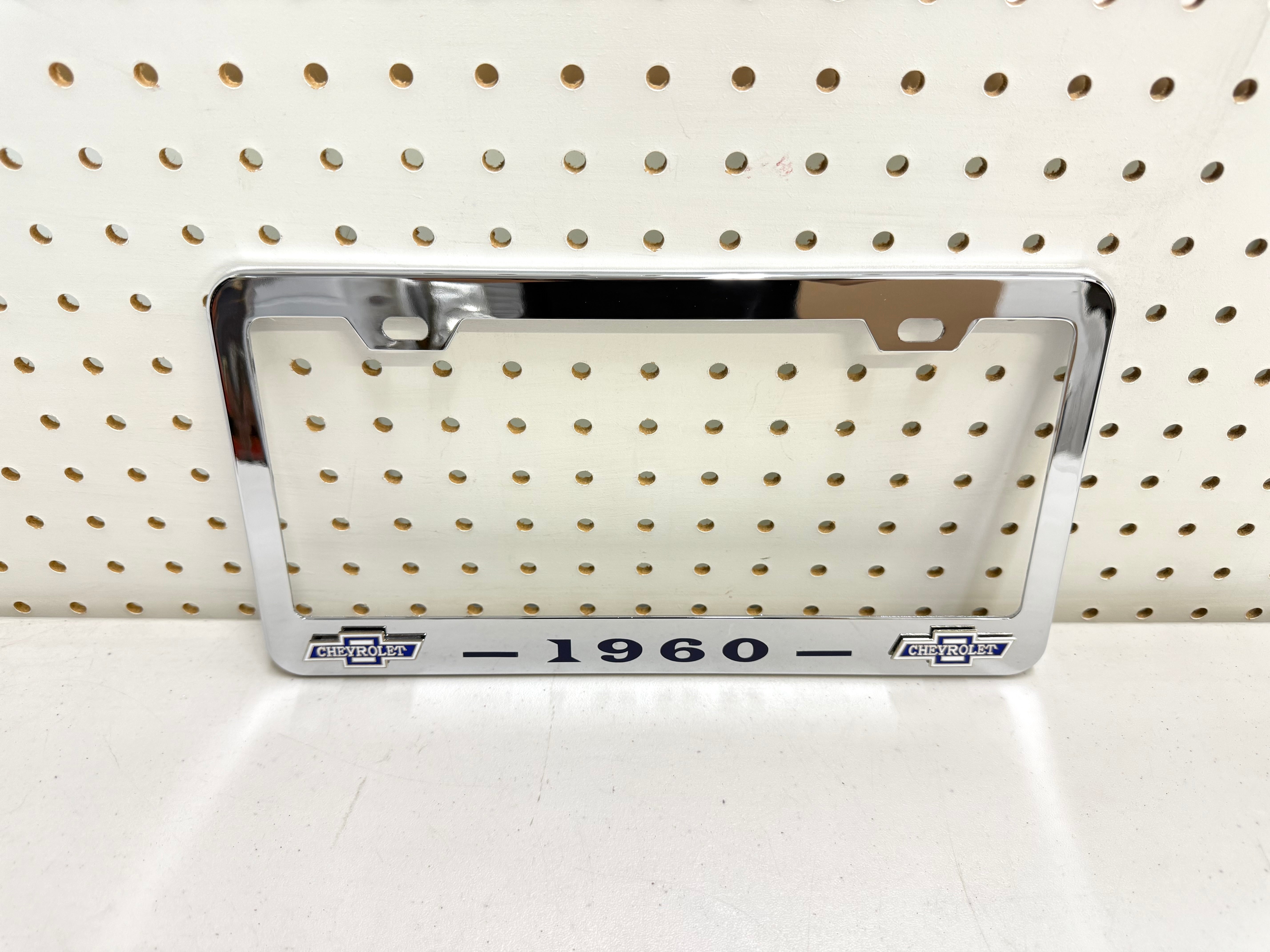 1960 CHEVROLET IMPALA, BEL AIR, BISCAYNE CHROME LICENSE PLATE FRAME WITH DUAL CHEVY BOWTIE LOGOS (2 HOLES)