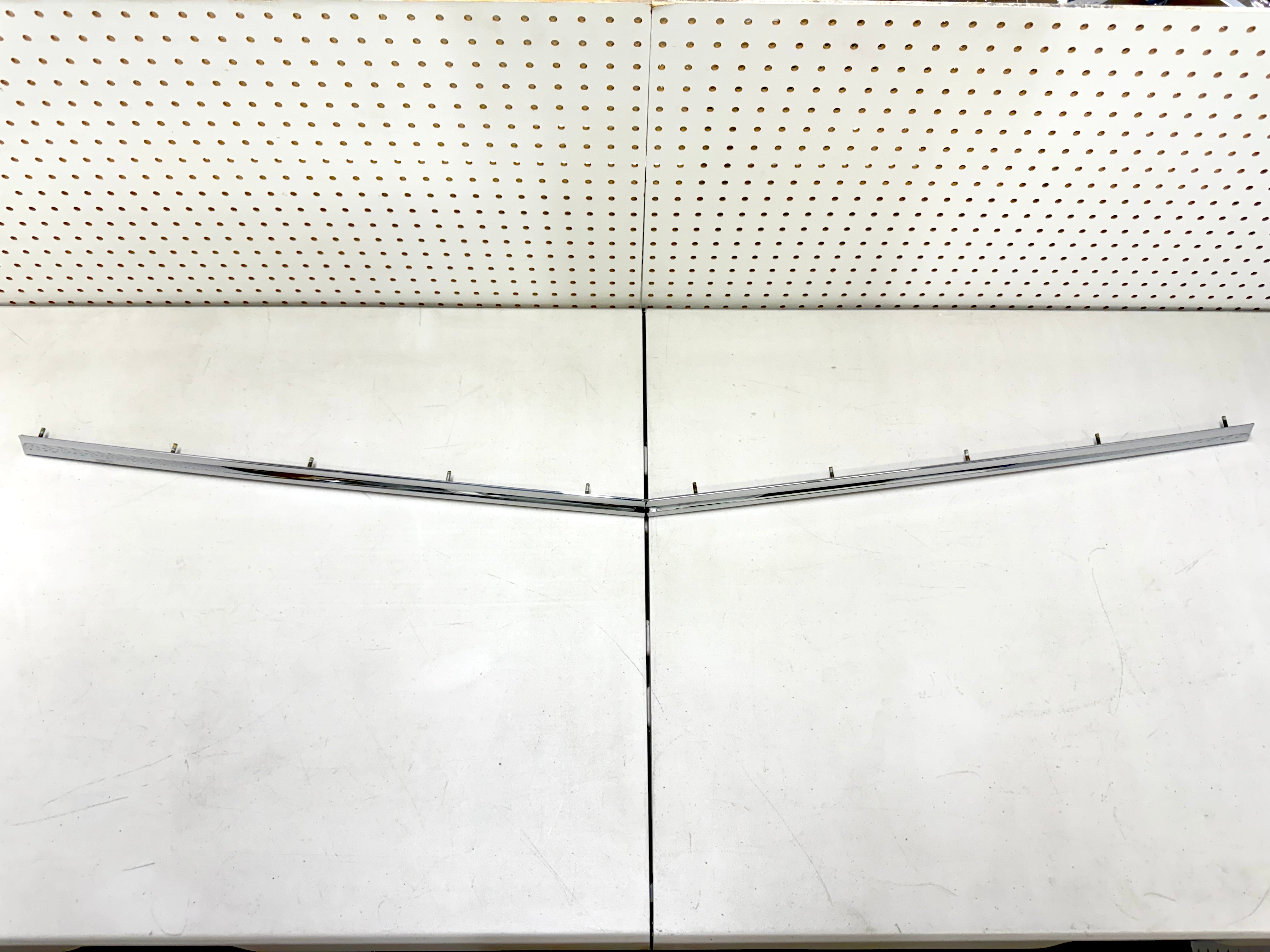 Correct reproduction hood lip molding designed for 1960 Impala Bel Air El Camino and Biscayne models. Each molding is a stamped aluminum reproduction of the original. Will replace the damaged or missing original molding and add new life to the front end. Installs on the front lip area of the hood. Includes mounting clips.