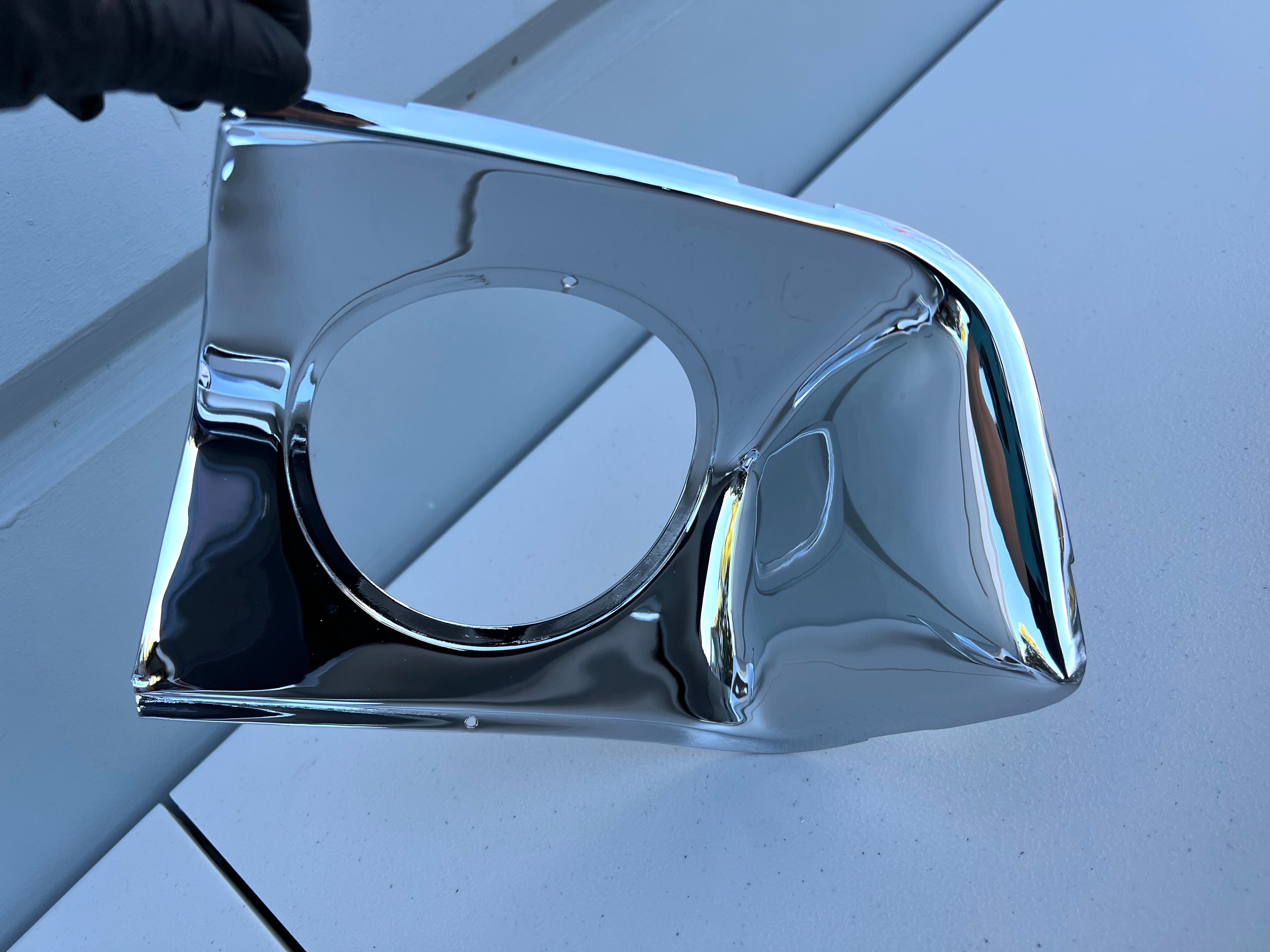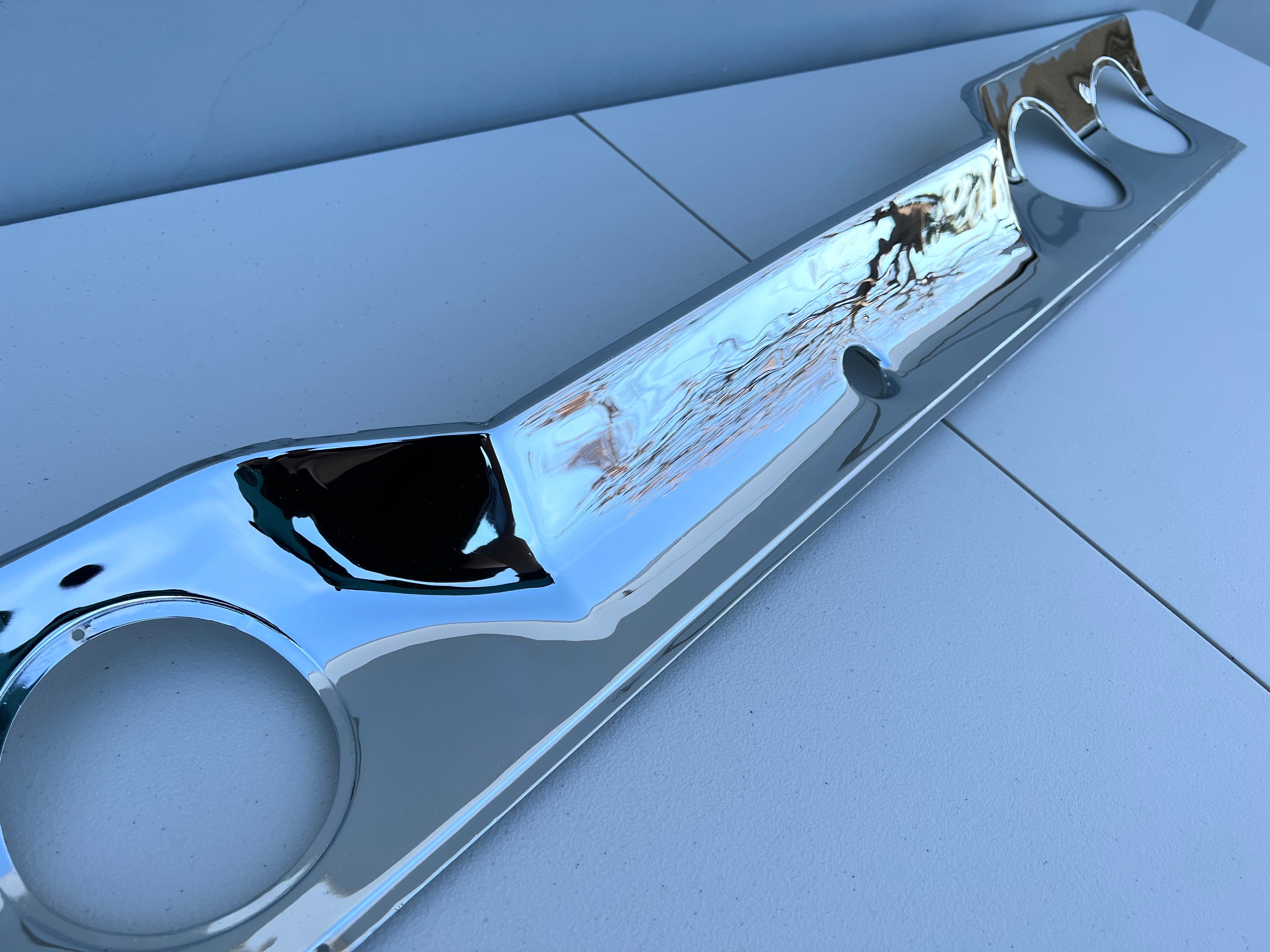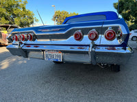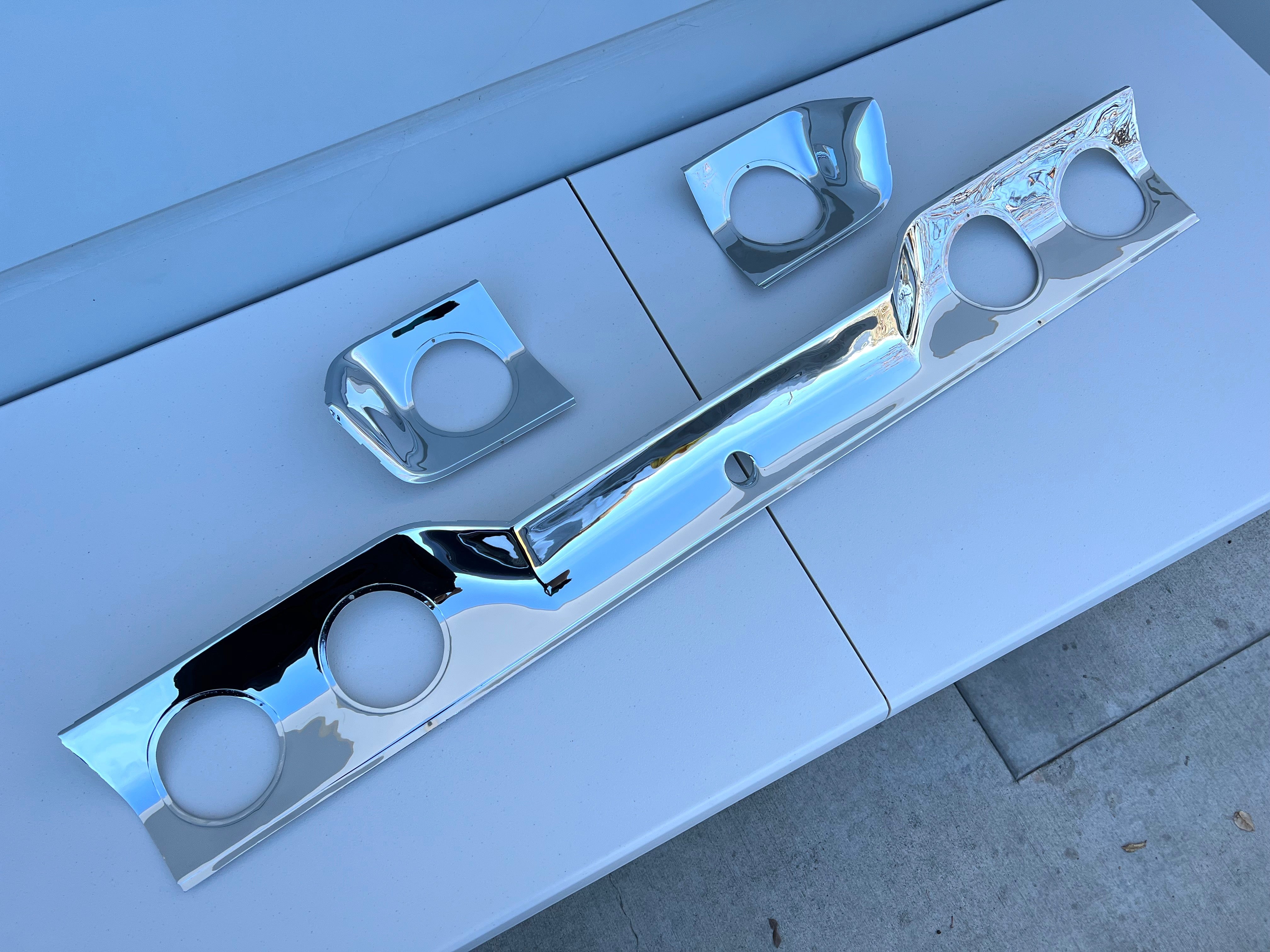 1963 CHEVY IMPALA REAR TRUNK LID PANEL & TAILLIGHT COVE TRIM INSERTS 3PC COMPLETE SET (OEM / ORIGINAL) / CHROME FINISH