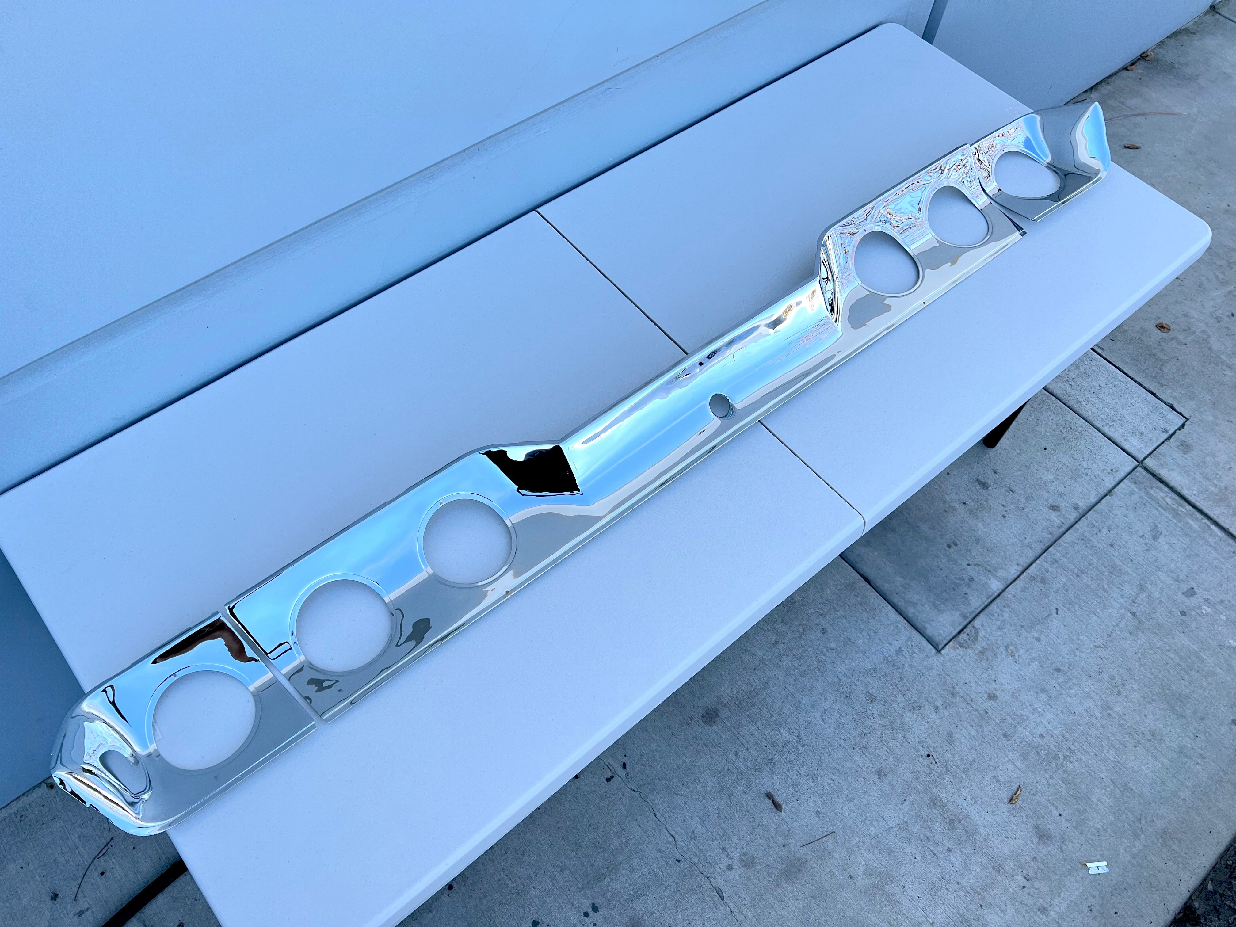 This trunk lid panel and taillight cover trim inserts will really set your car apart. This is original 63 chevy impala rear cove panel 3piece complete set.
