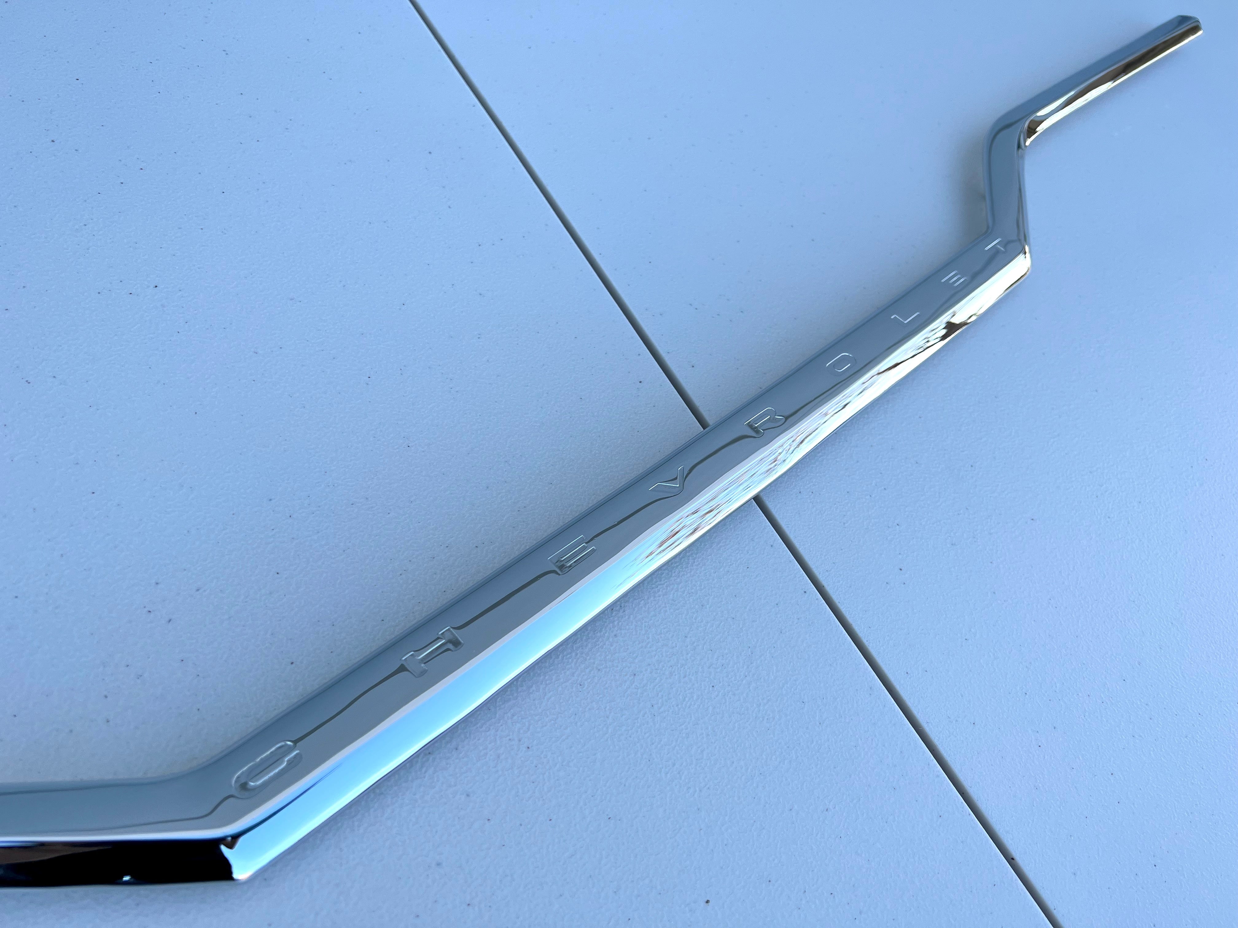 1963 CHEVY IMPALA , IMPALA SS TRUNK UPPER TRIM MOLDING 1PC (OEM / ORIGINAL) WITH CHEVROLET LETTERING / CHROME FINISH