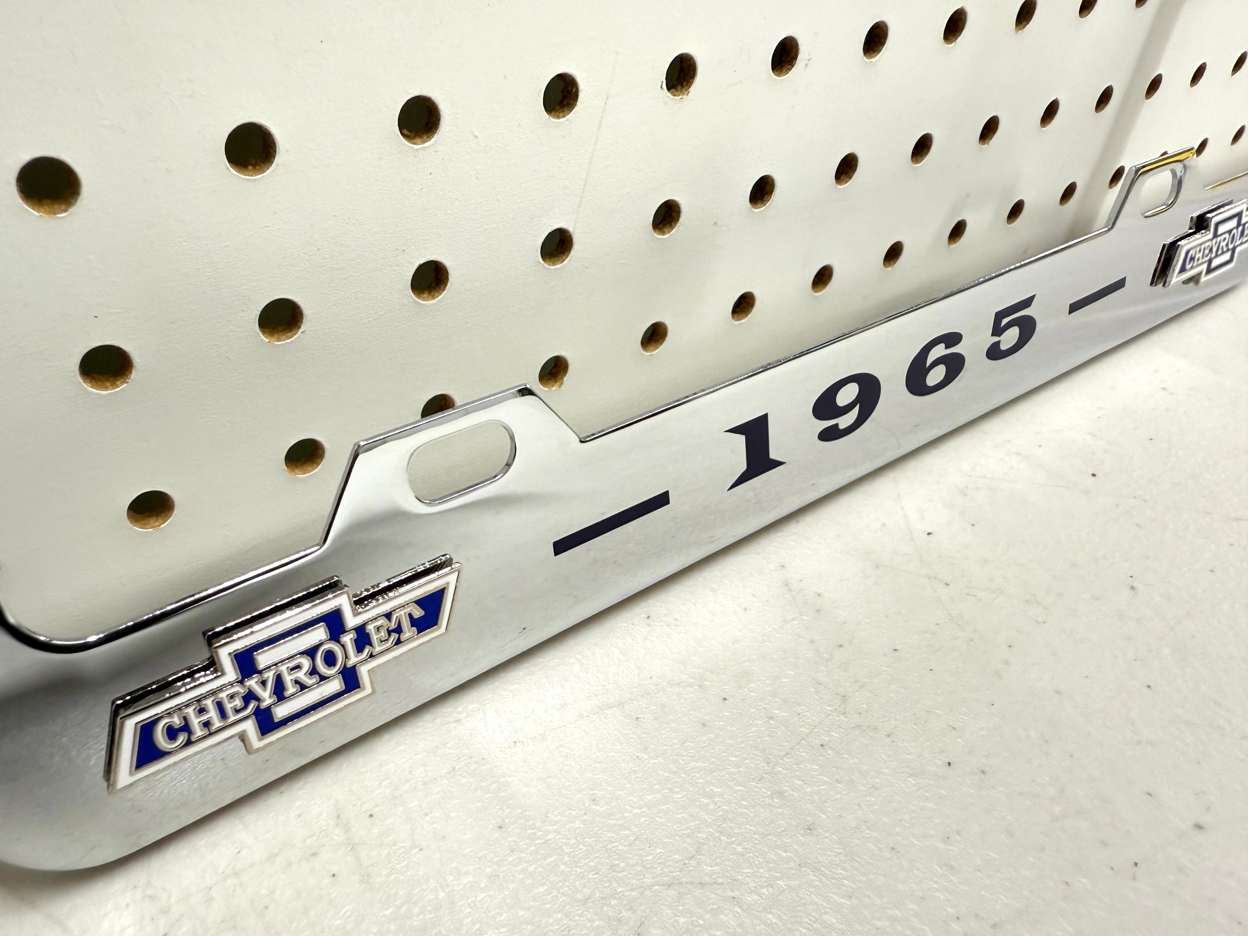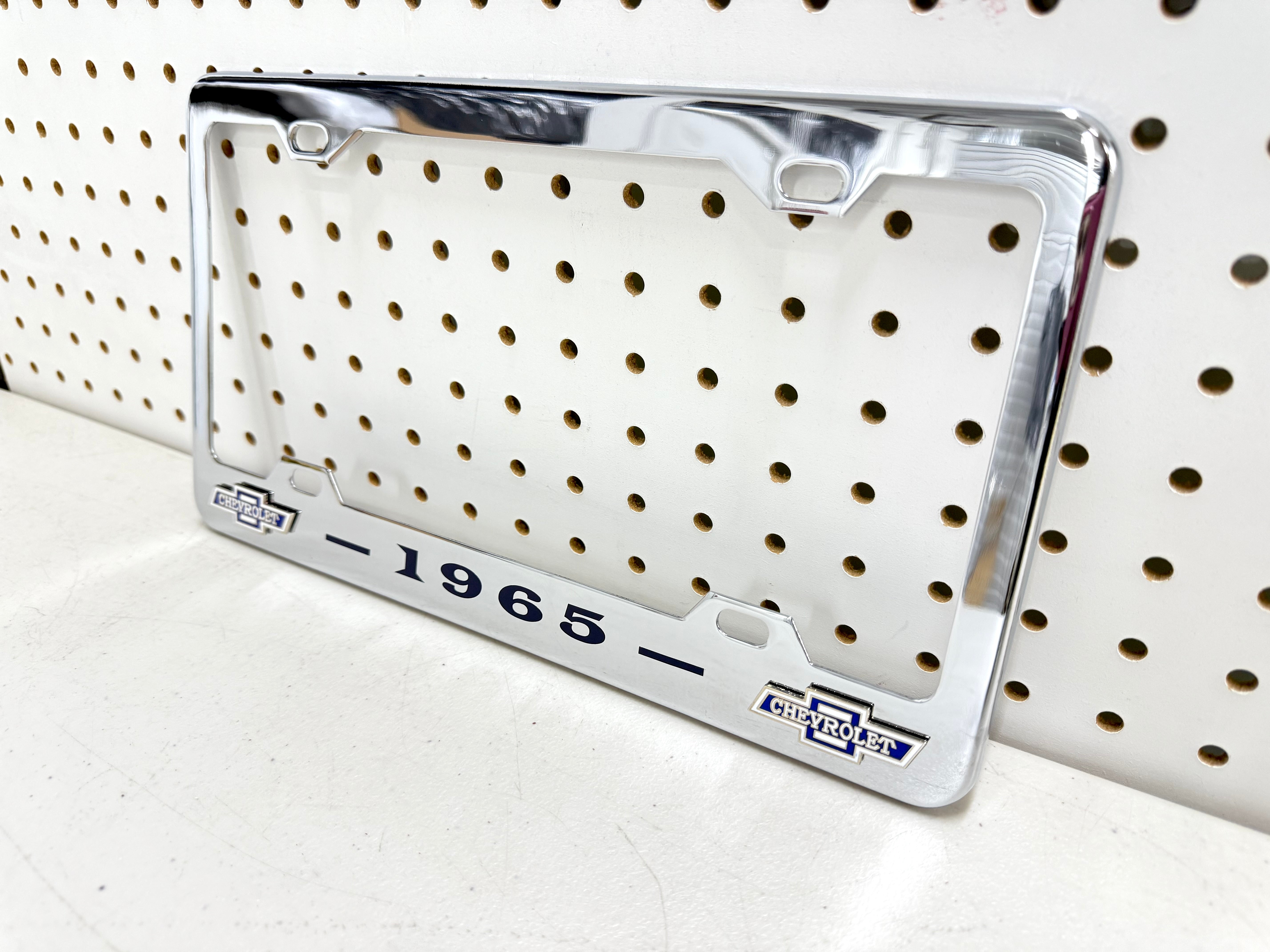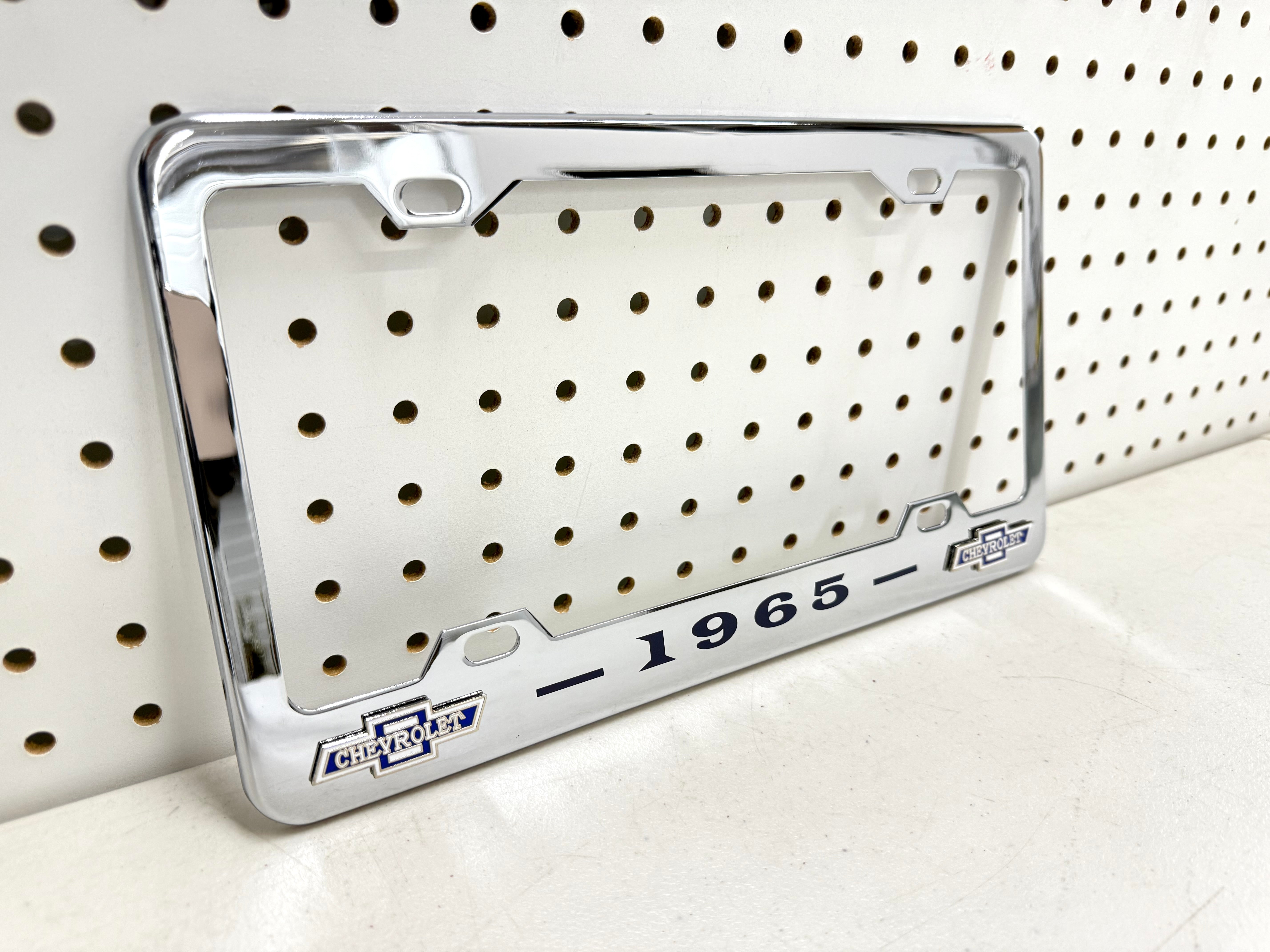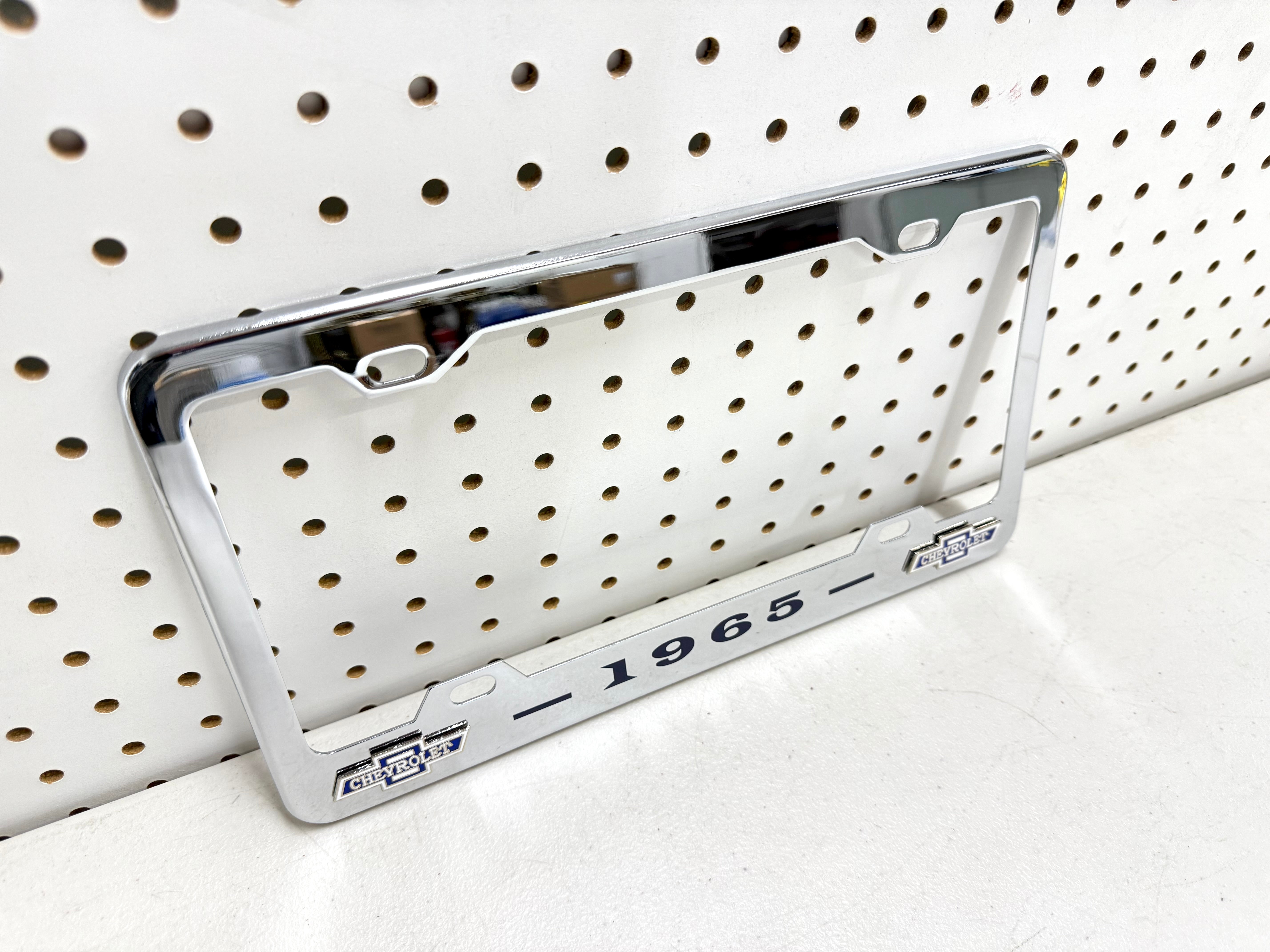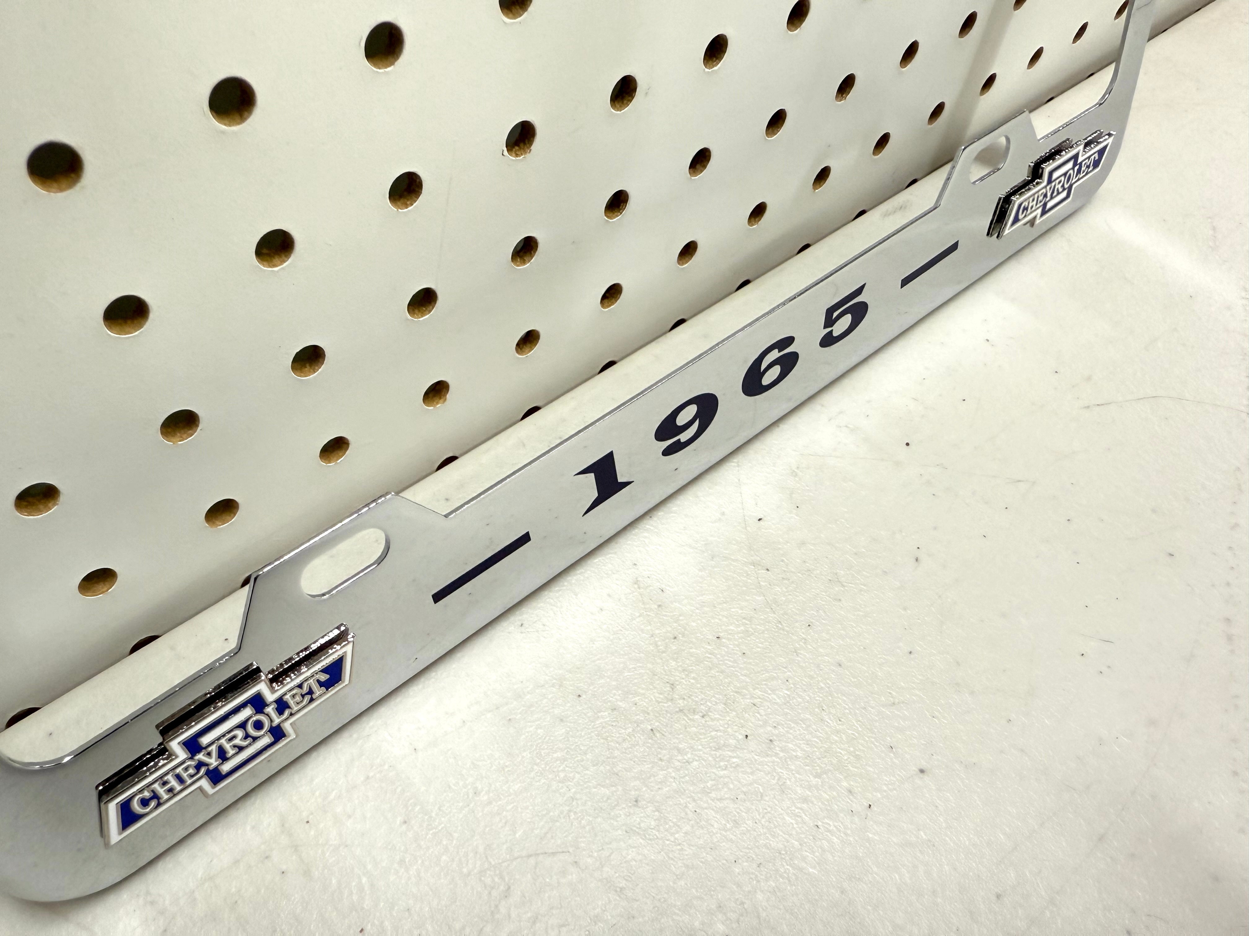 1965 CHEVROLET IMPALA, BEL AIR, BISCAYNE CHROME LICENSE PLATE FRAME WITH DUAL BOWTIE LOGOS