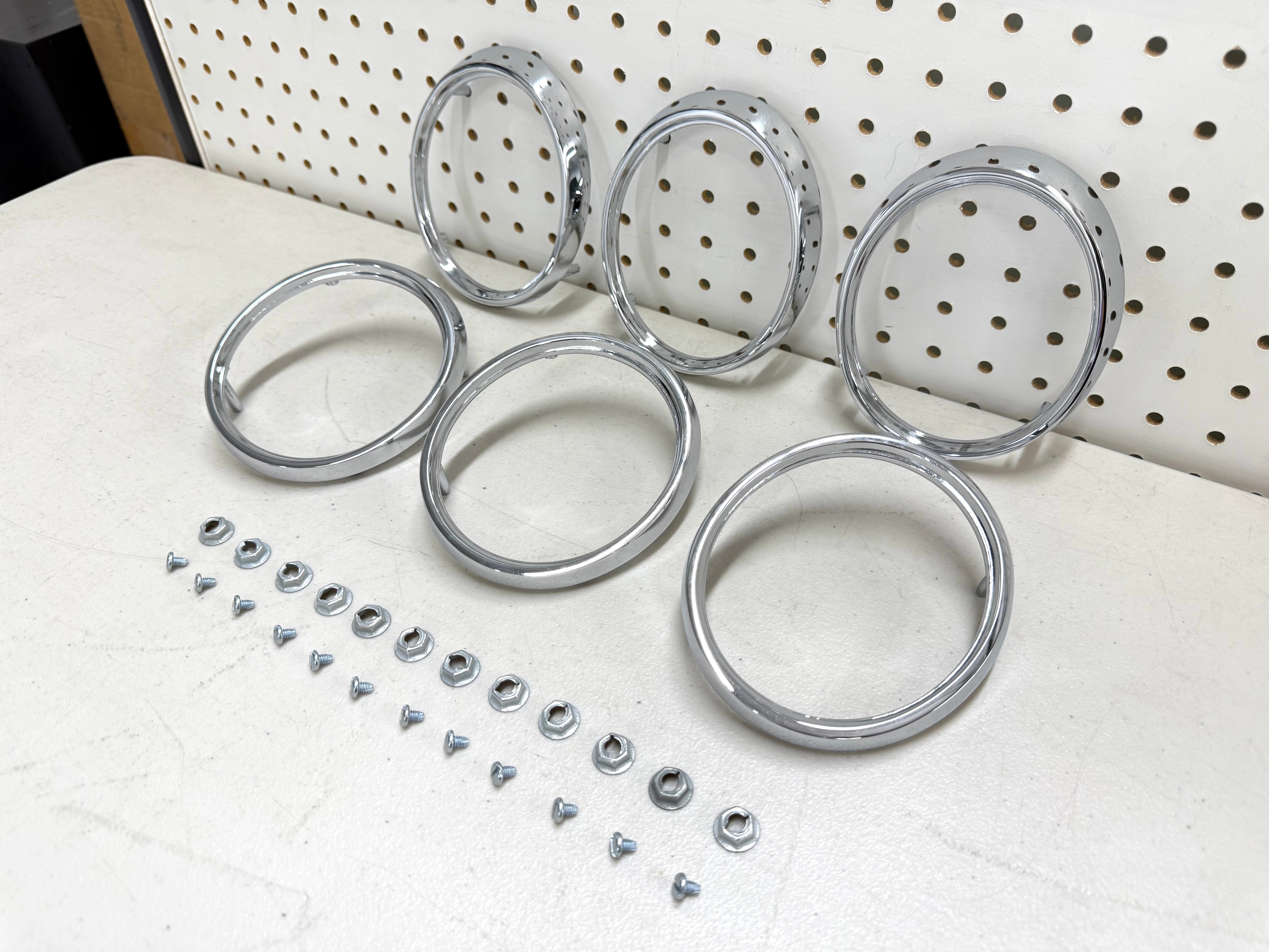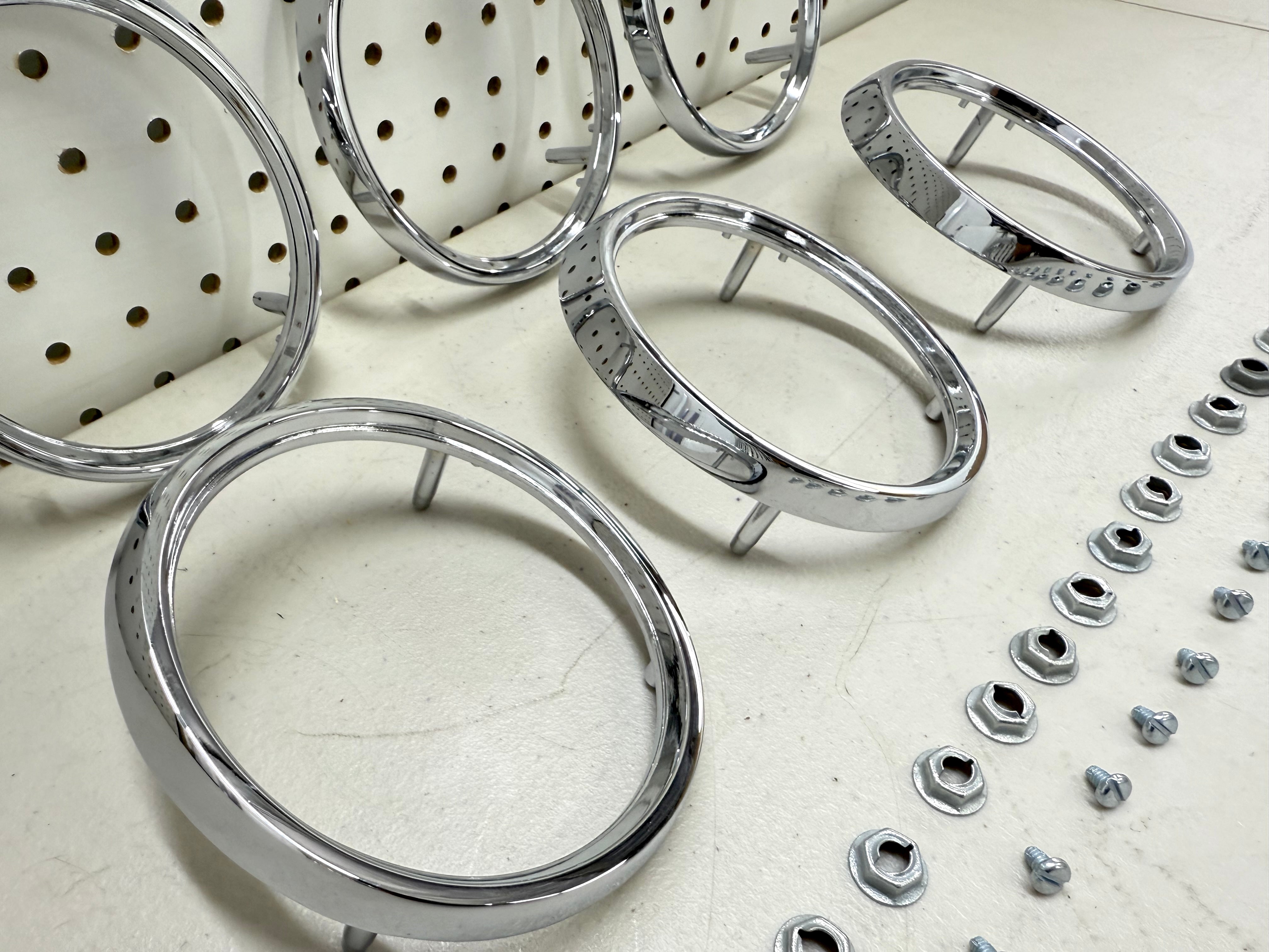 1965 Chevrolet Impala Bel Air Biscayne Tail Lamp Base Ring Trims Complete set come with backup reverse lamp base / Import Chrome