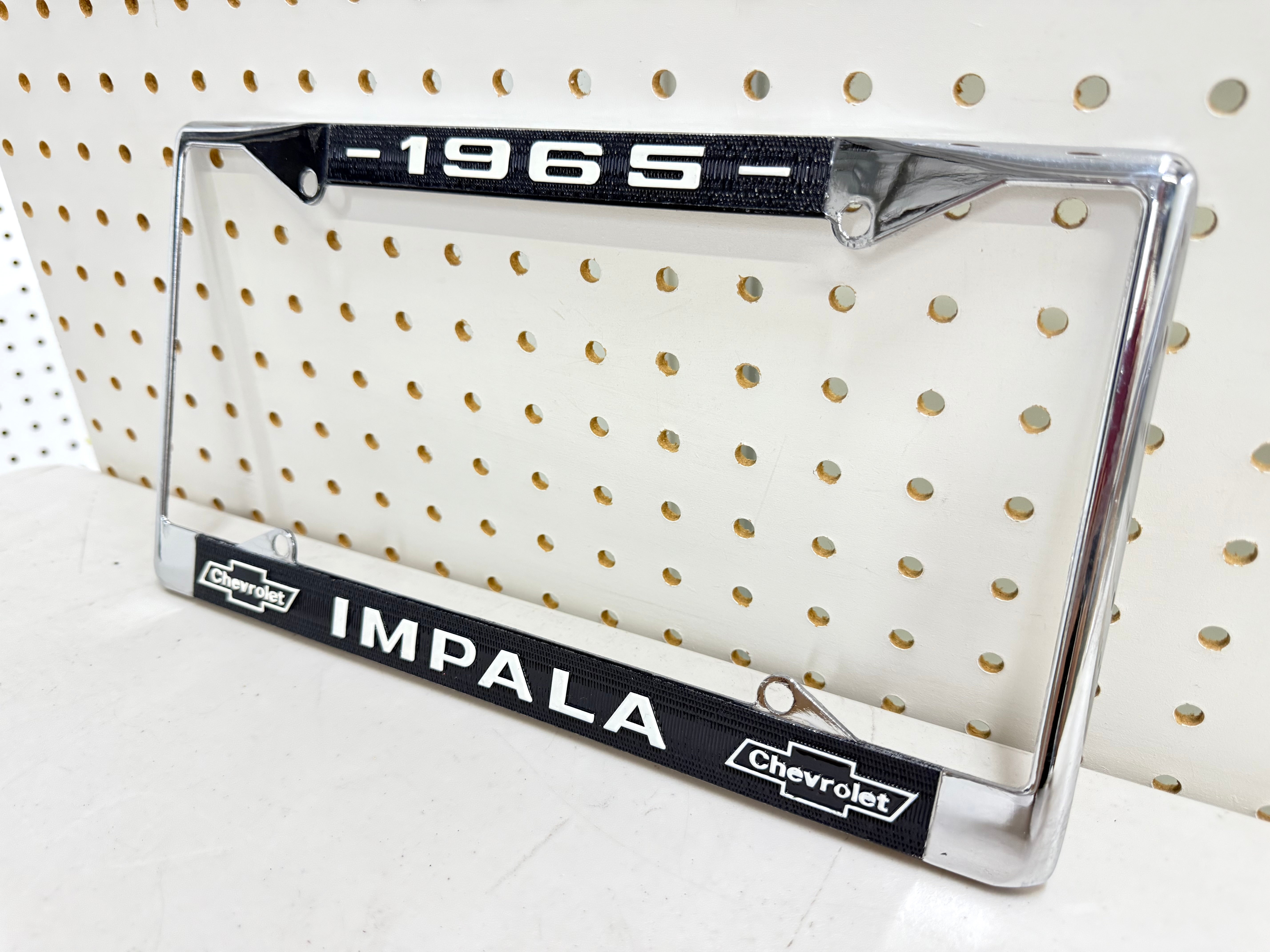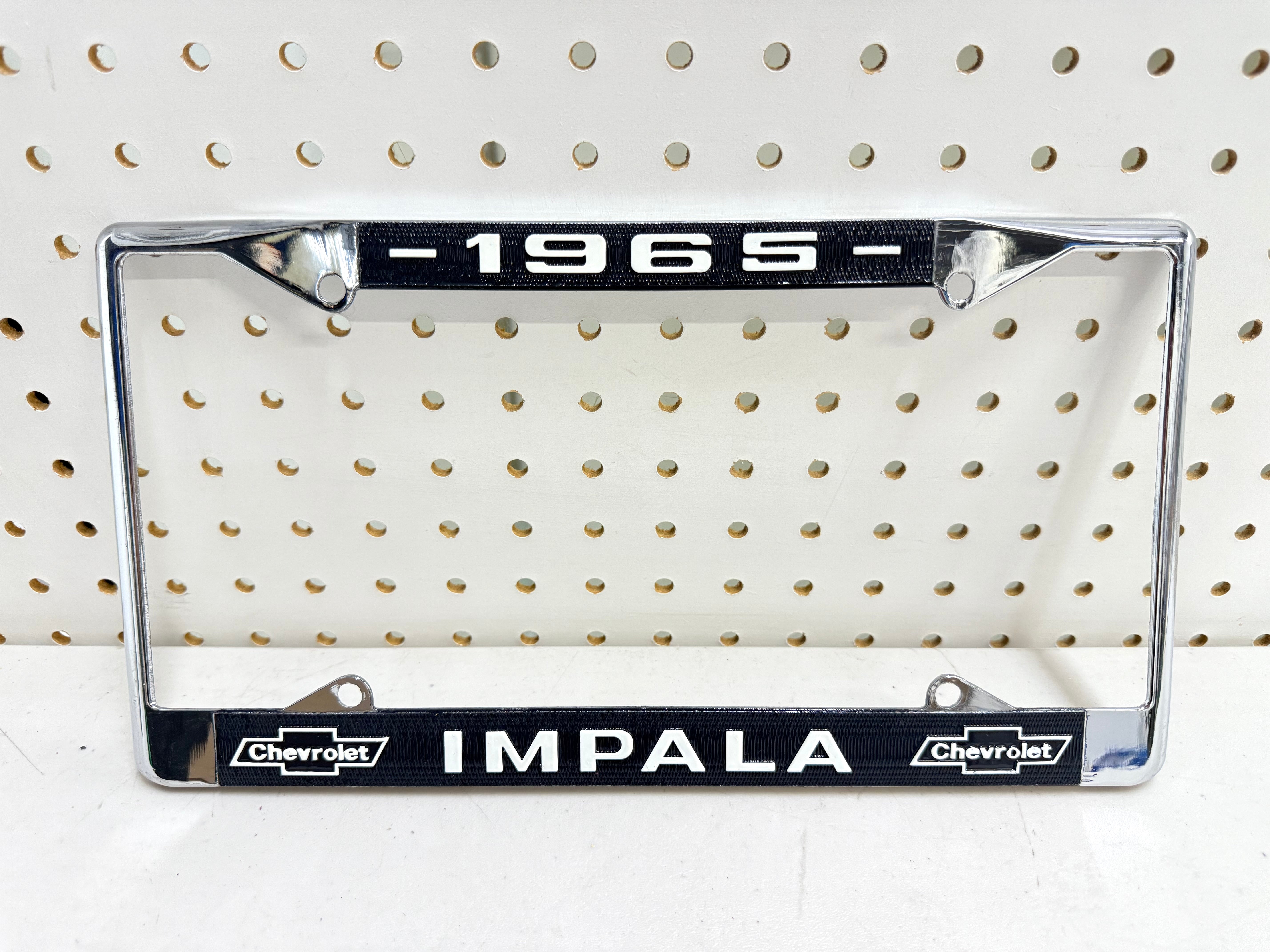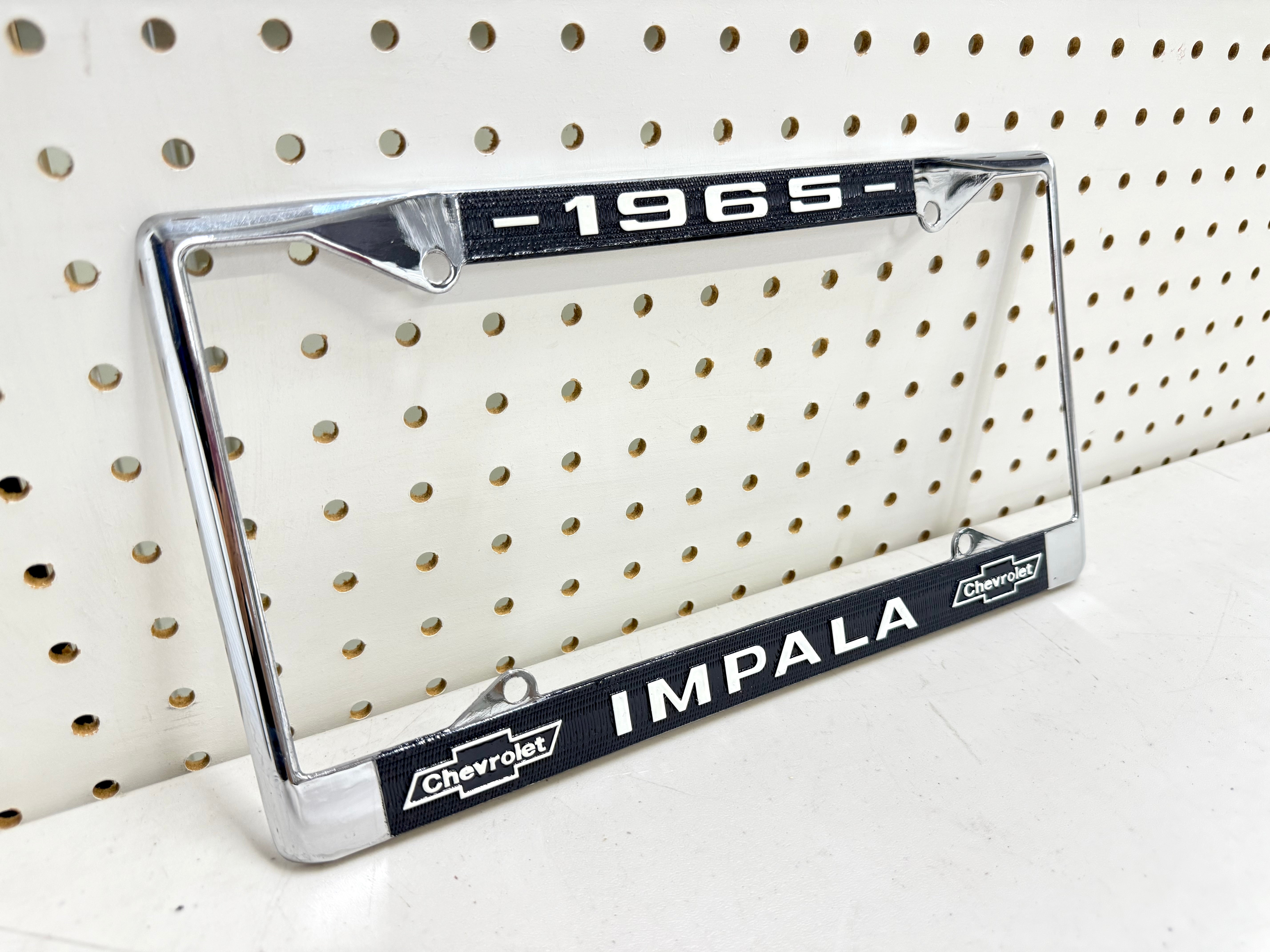 1965 Chevrolet Impala GM licensed vintage front or rear license plate frame with Dual Bowtie Logos