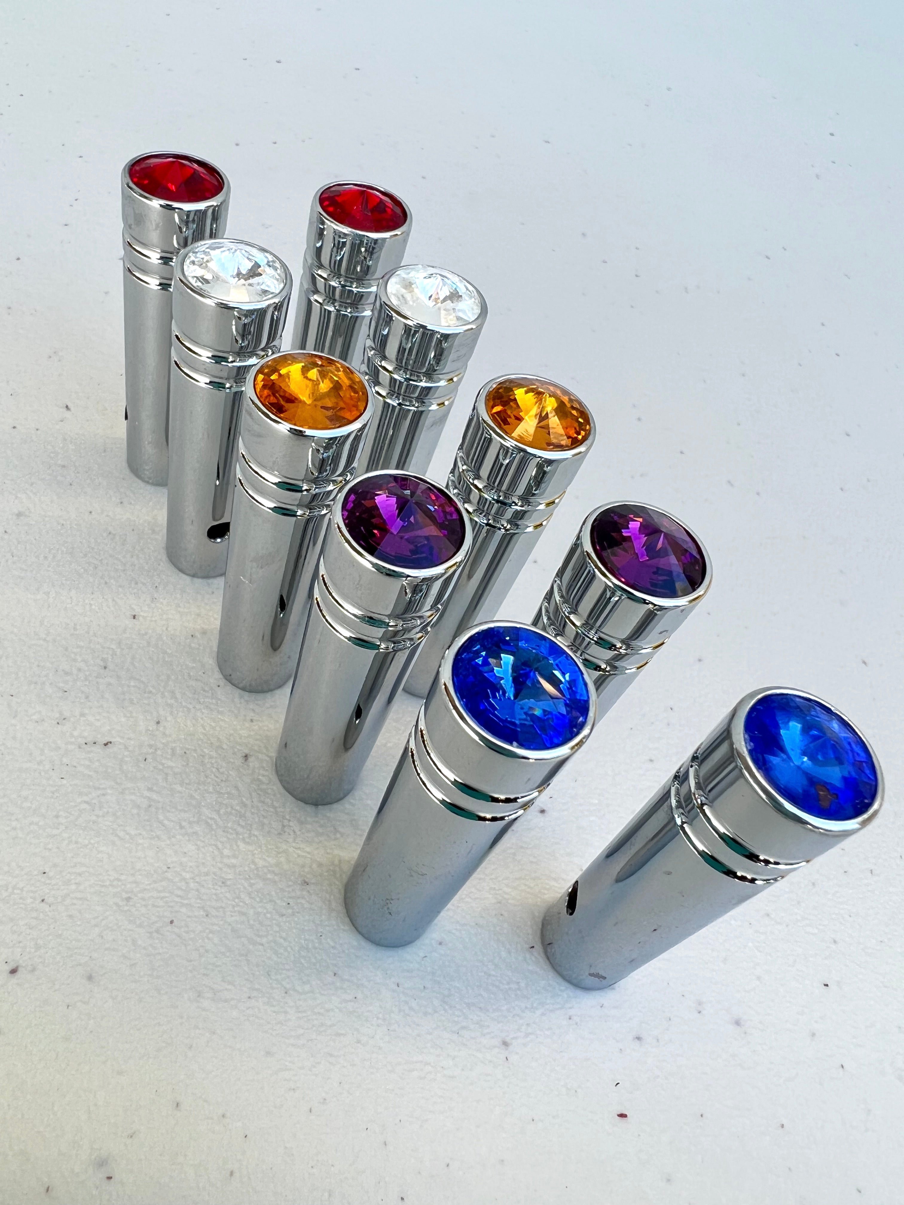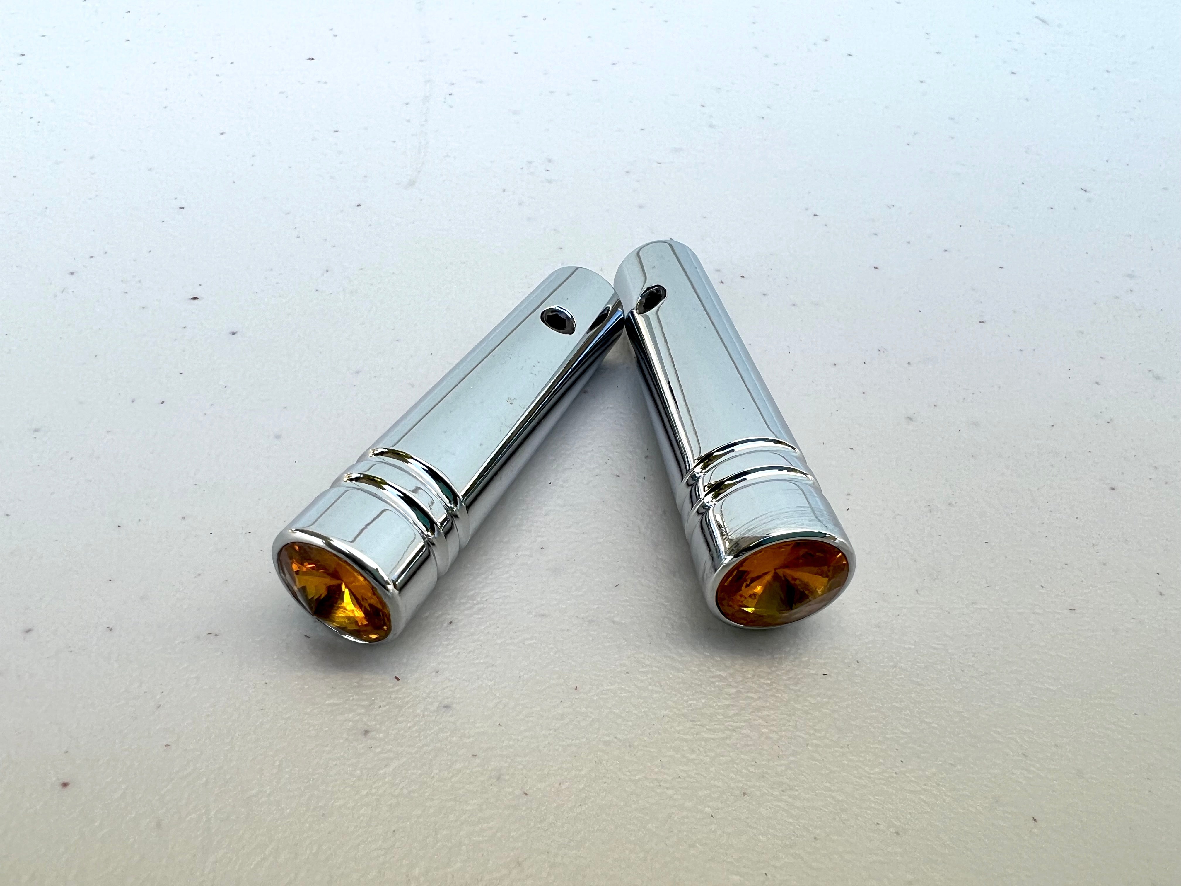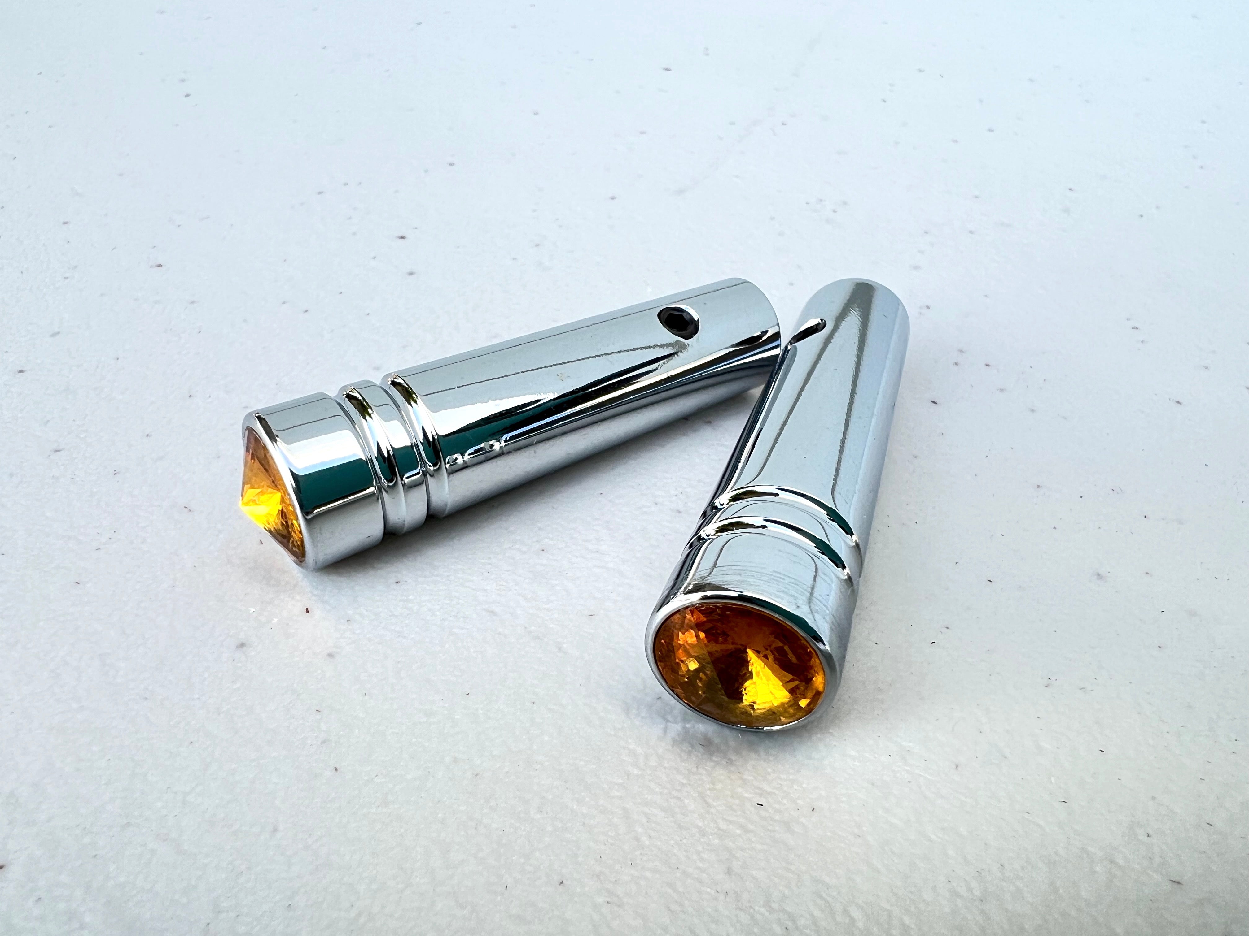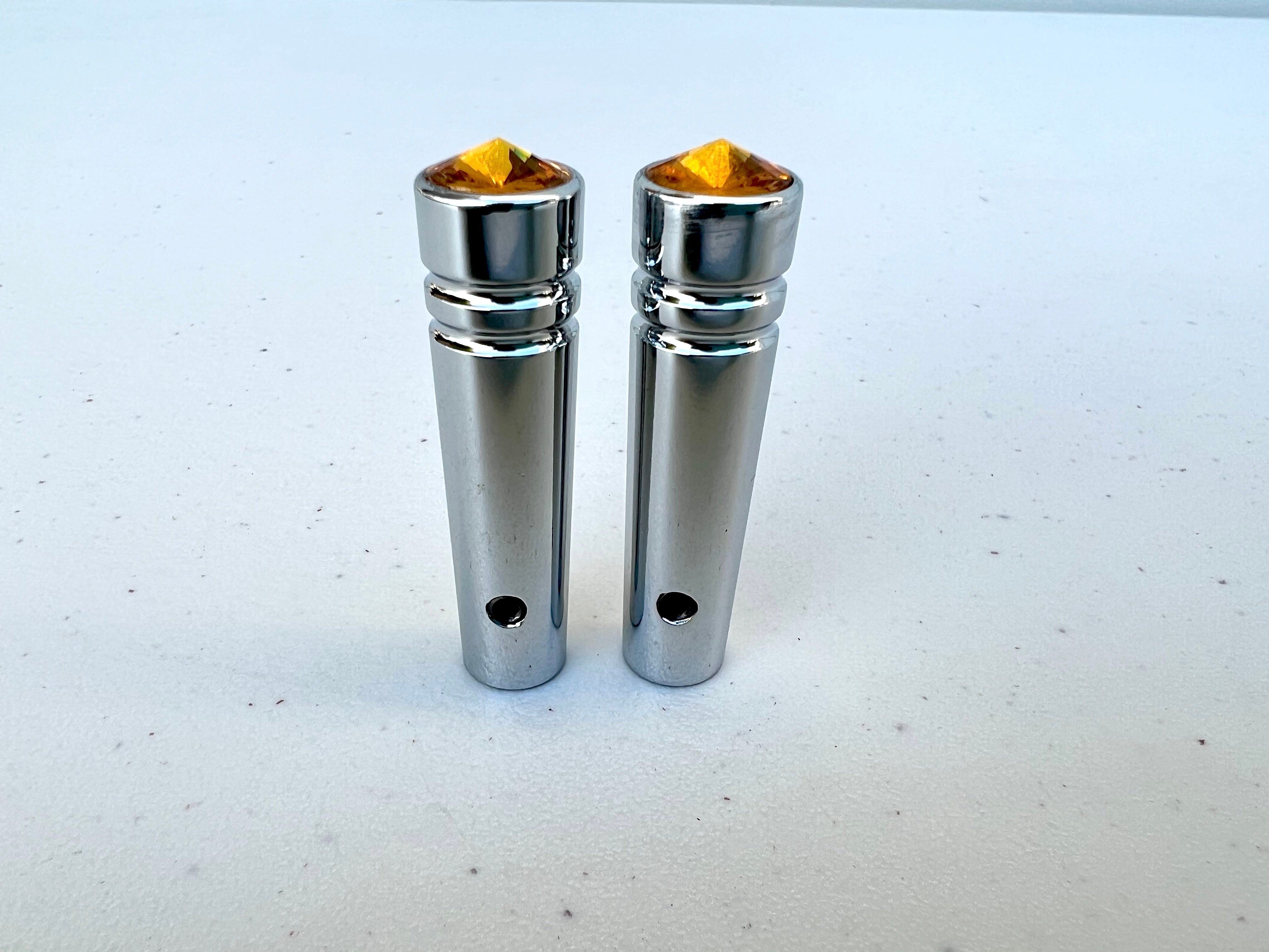 Chrome Aluminum Short Toggle Switch Extensions 2pc with Amber/Yellow Crystal Diamond / for AIR RIDE LOWRIDER HYDRAULICS SEMI TRUCK