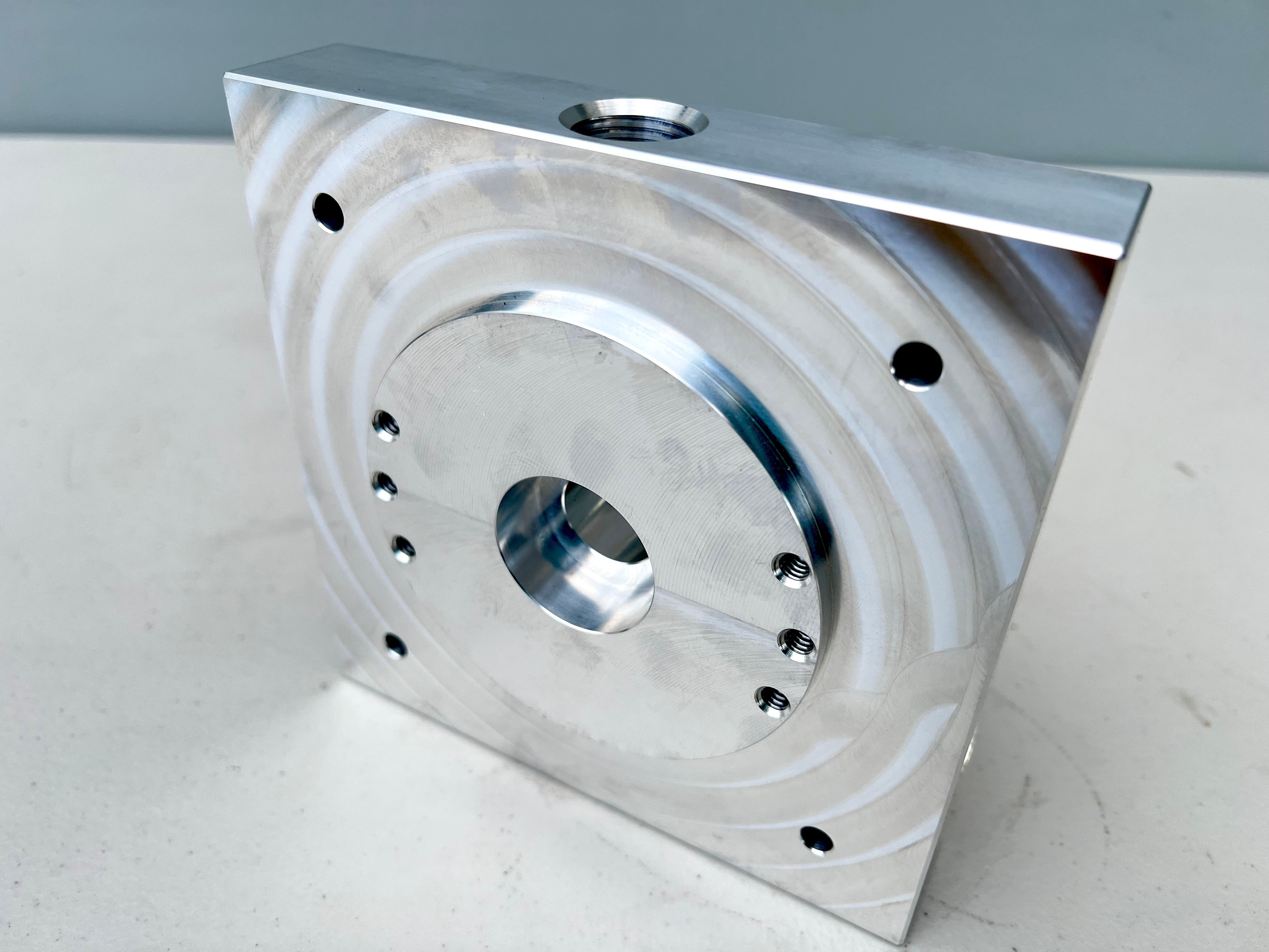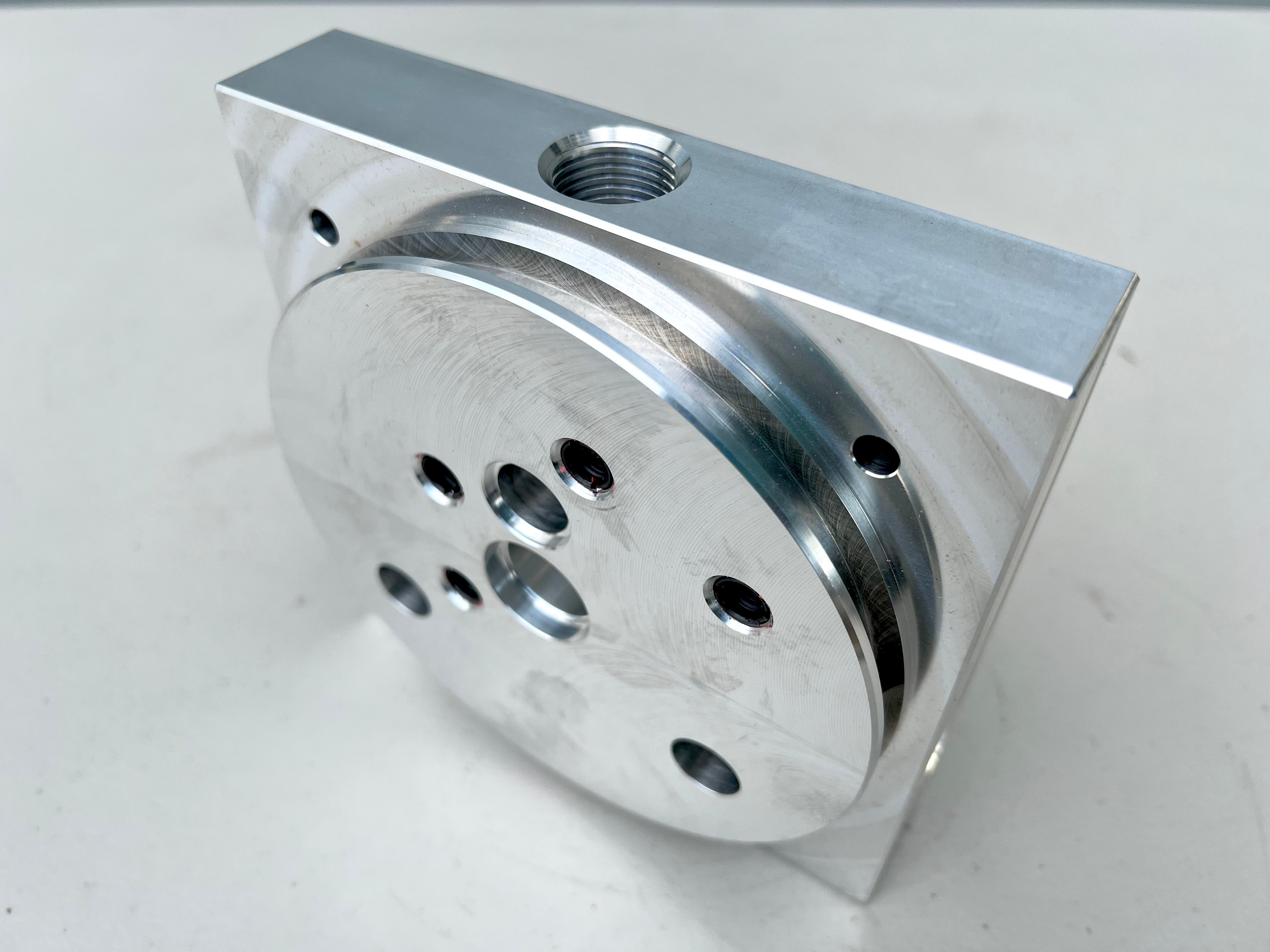 This is Aluminum machined square regular block with 1/2" center port for our MKG og series hydraulics pump. will fit regular size tank and pumps.