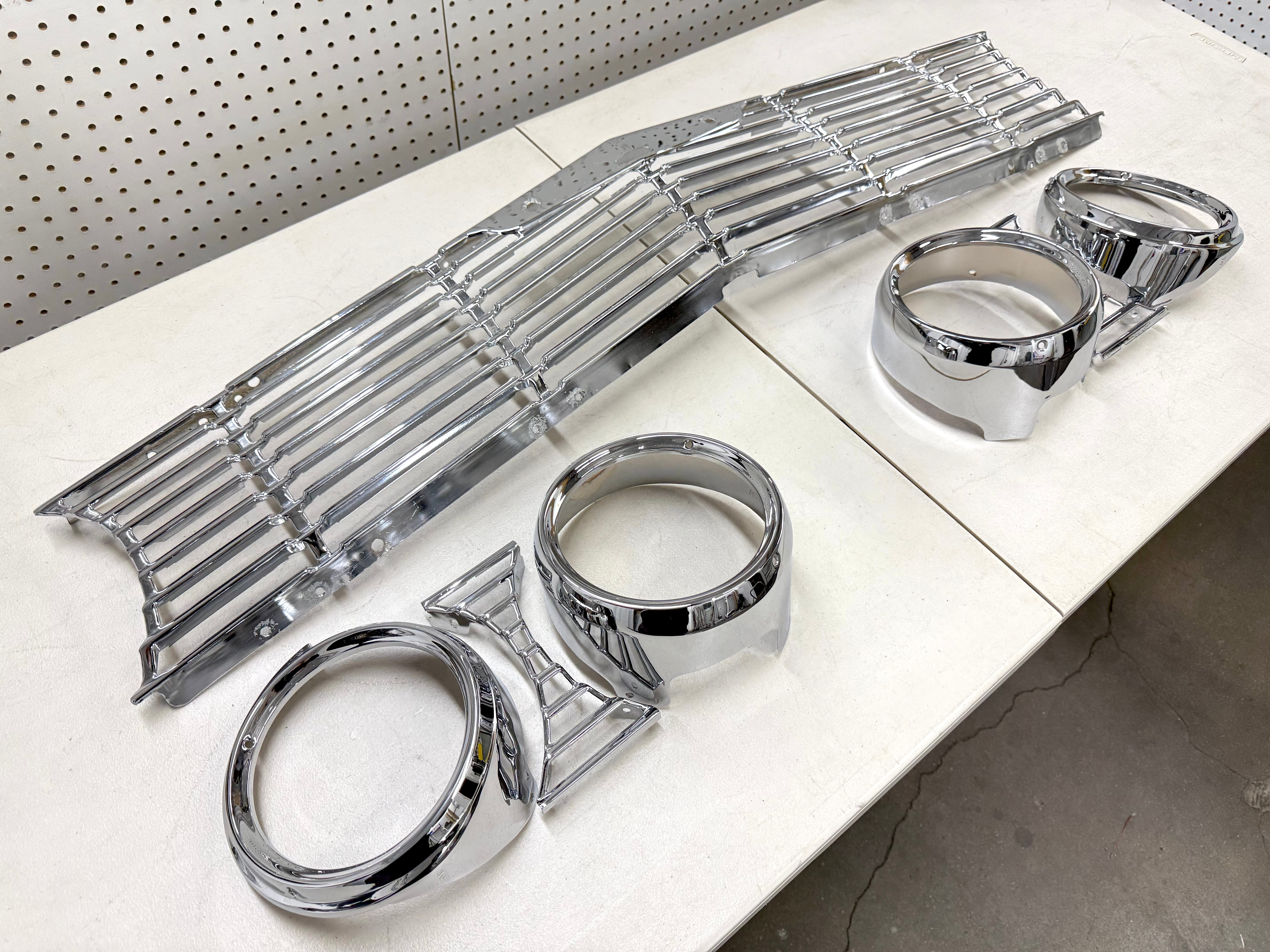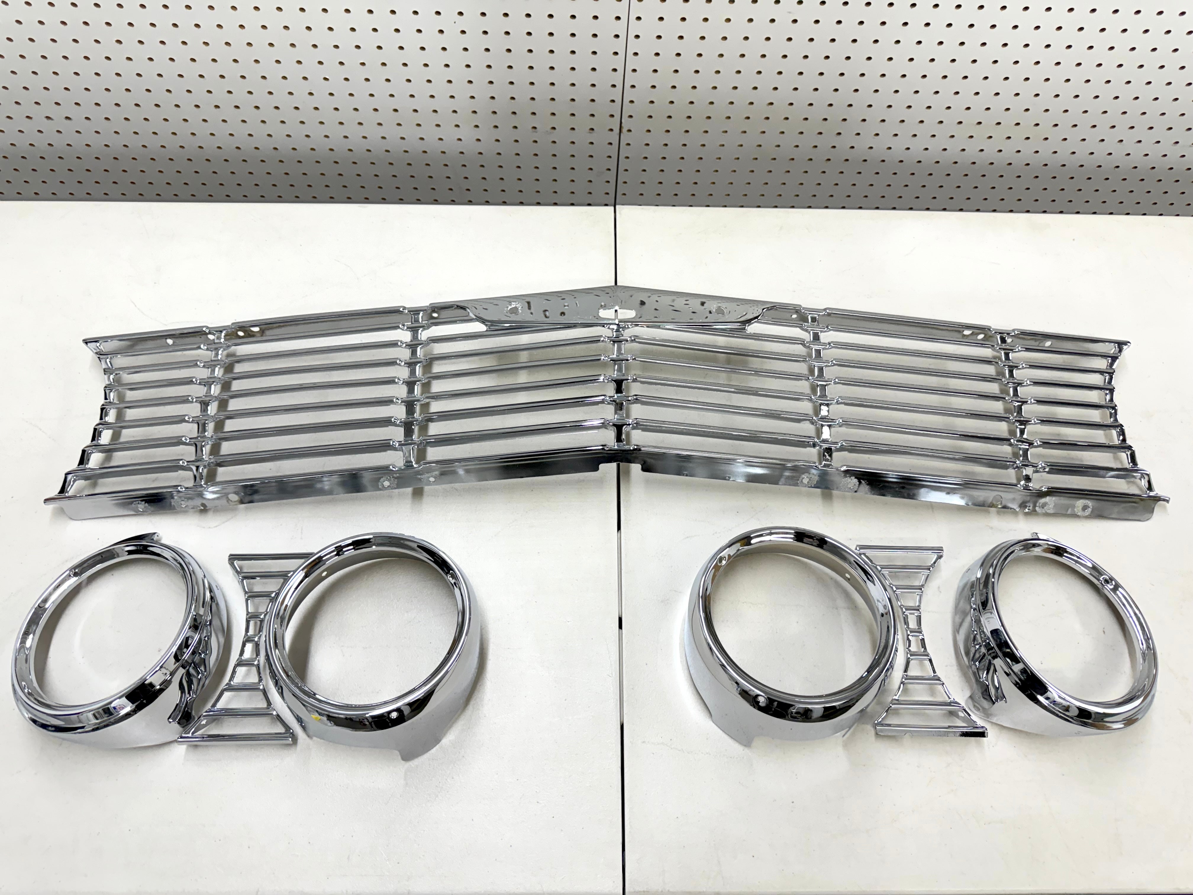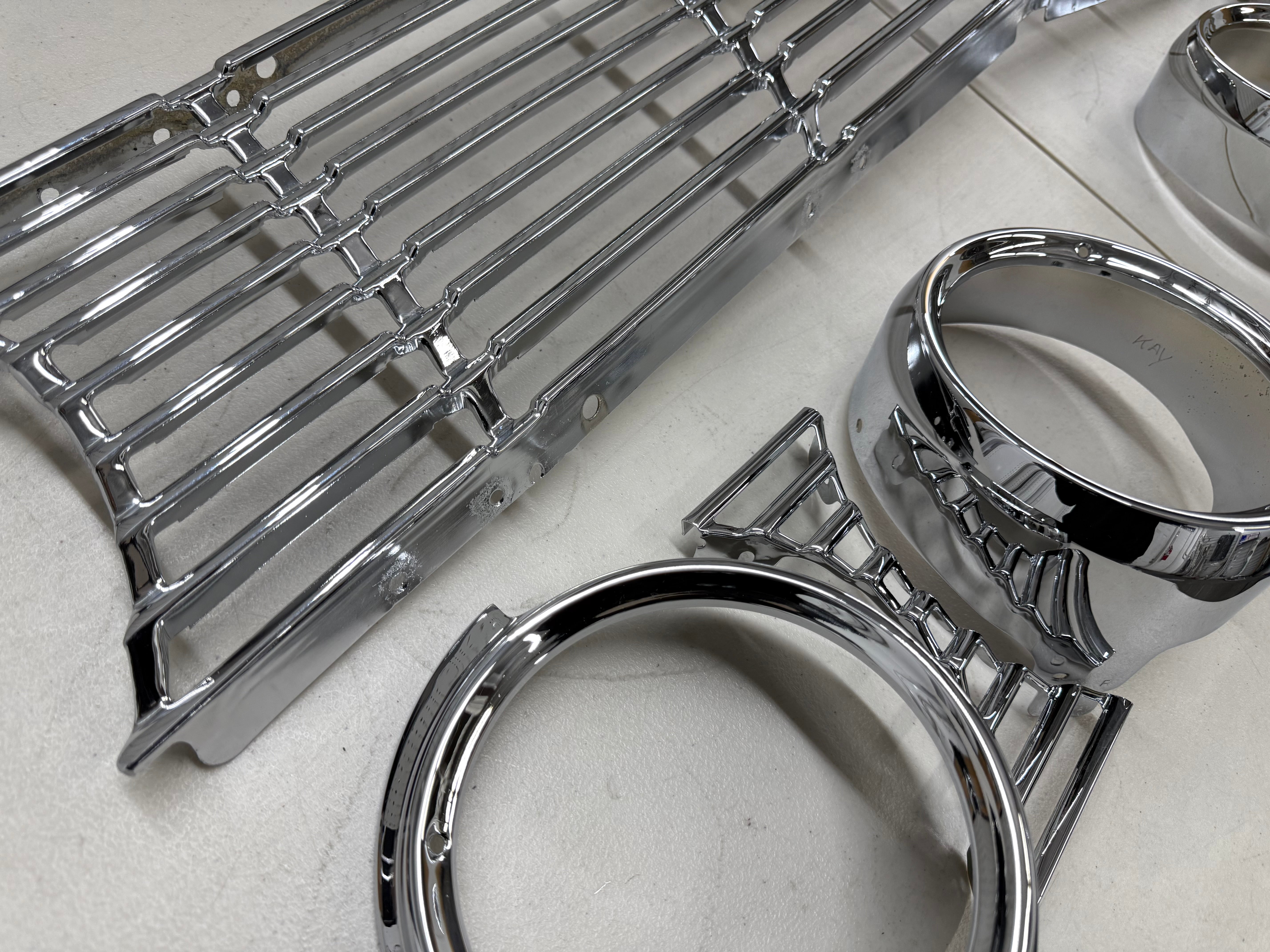 1961 GM Original Chevrolet Impala , Bel Air , Biscayne / Full Size Front Grill (Grille) with Headlamp Bezels and Molding Dividers Complete Set ( OEM Restored / Triple Chrome Plated )