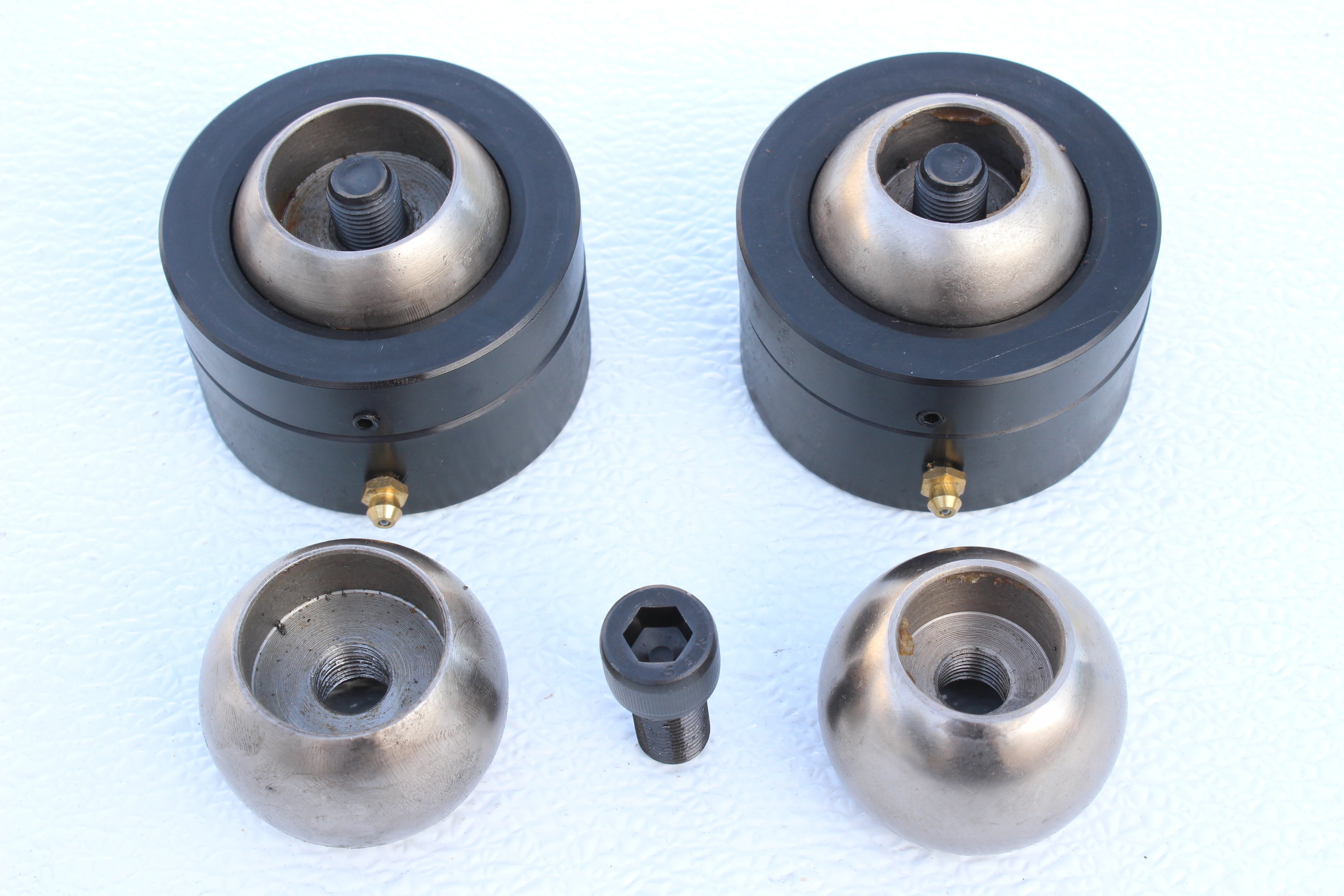 Two (2) pieces of power balls. Universal application, will fit fat & super fat cylinders. The power ball has a fastening screw on cap and a lubricating port on body side.For use in lowrider with hydraulic suspensions